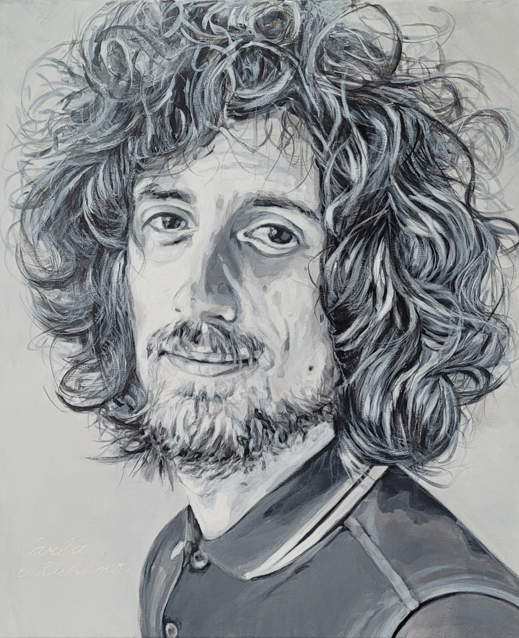 Sander Brinks, Tangarine. Portret schildering zwart wit gemaakt door Carla van Lieshout. Schilderijen van Carla van Lieshout Galerie Bernheze Nistelrode