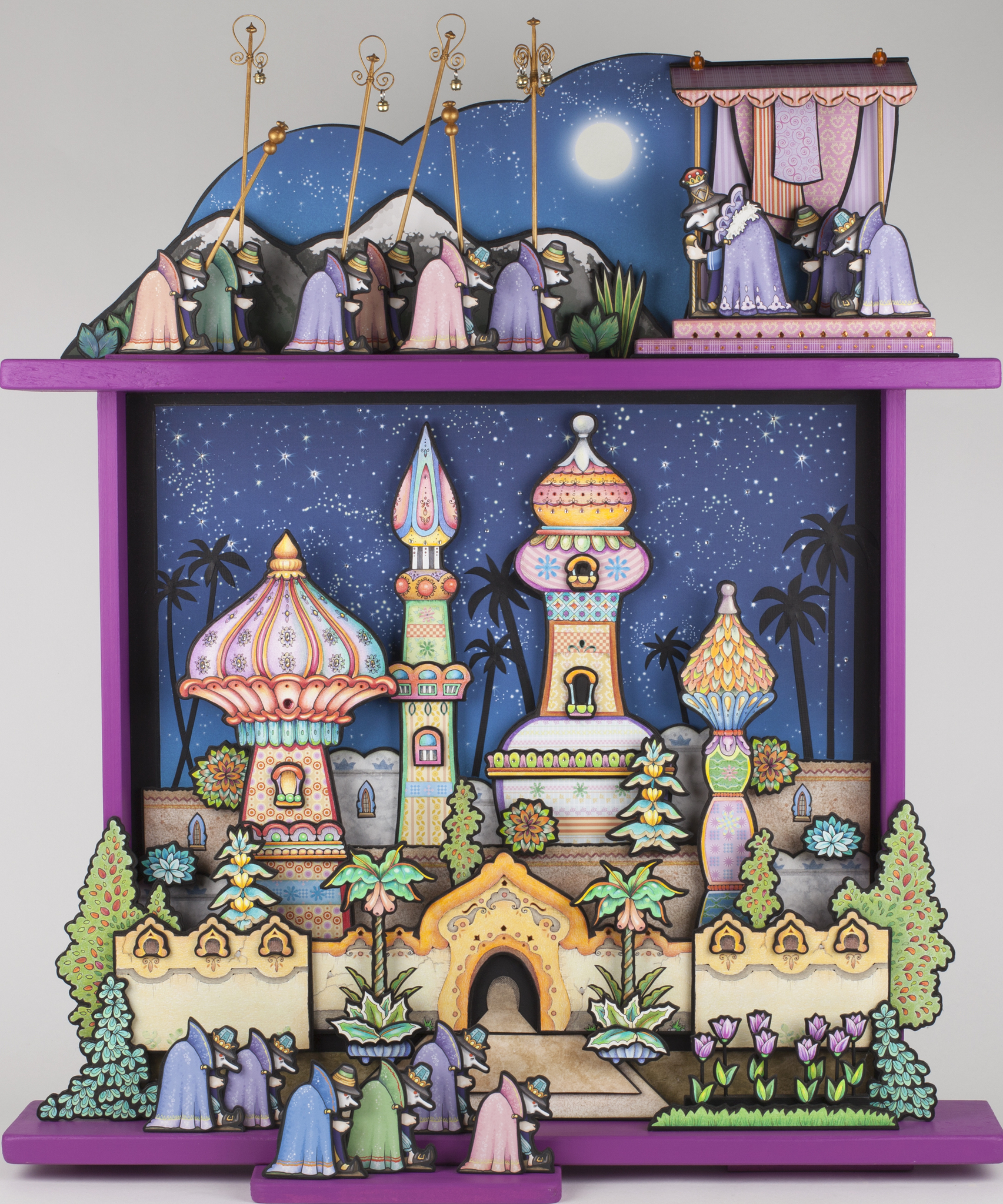 Houten dioramabakje met illustraties op MDF, uitgezaagd in 3D.