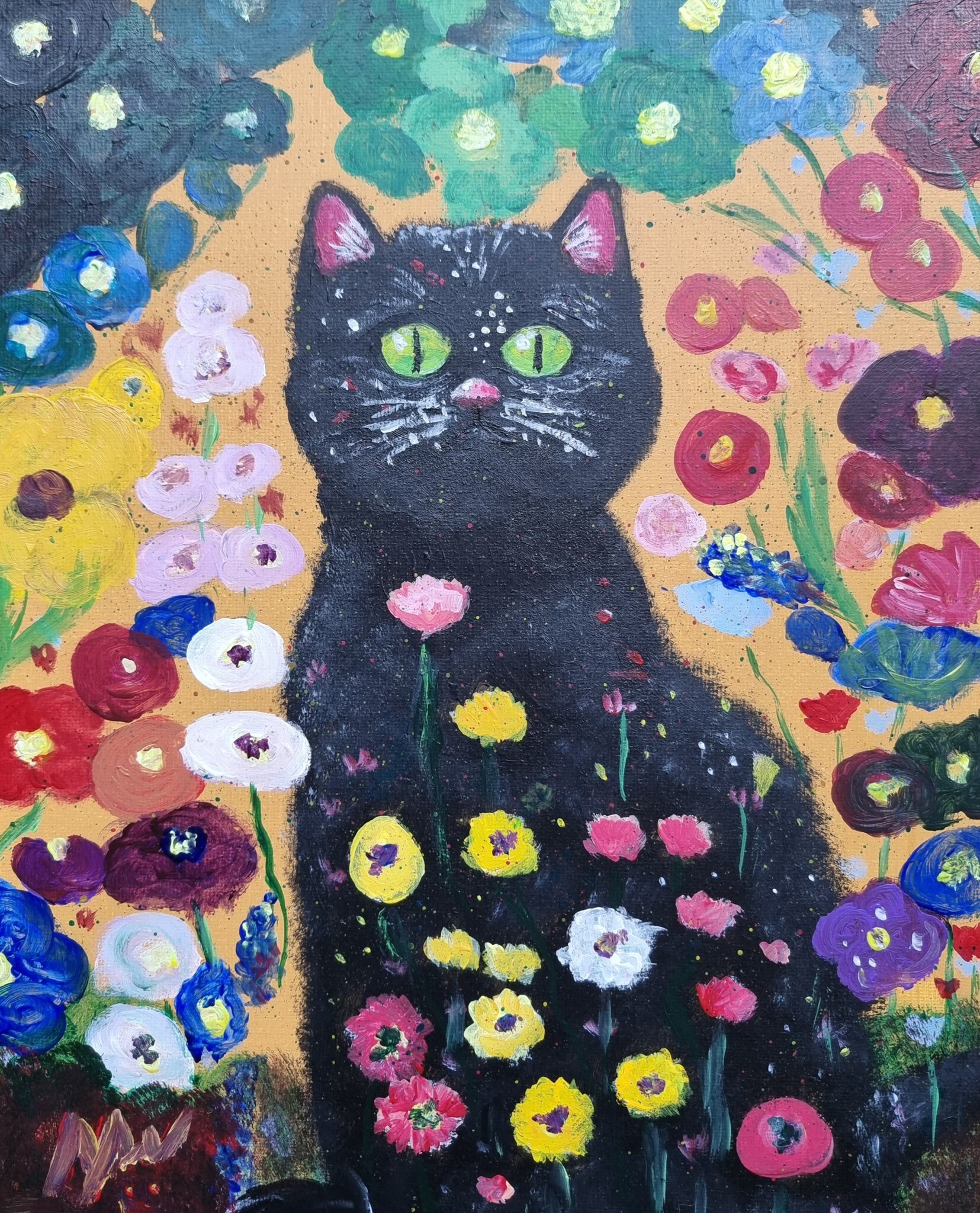 Geínspireerd door Gustaf Klimt. Super leuk met de kleuren en natuurlijk met een kat. Dus mijn eigen versie ervan gemaakt.