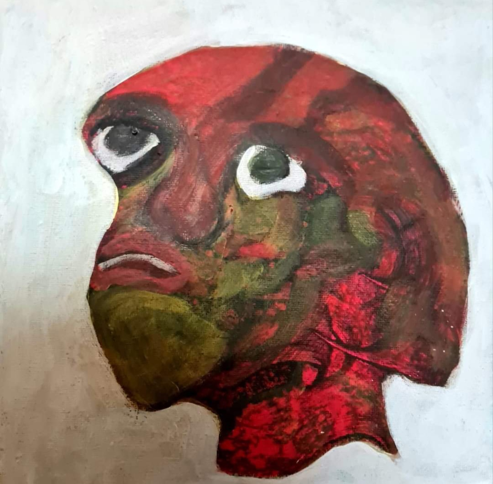 De grote, treurende ogen van het wezen spreken boekdelen. Ze lijken niet alleen de pijn van een individu uit te drukken, maar ook die van een hele beschaving. Misschien heeft deze alien net kennisgemaakt met de aarde, of misschien weerspiegelt het onze eigen onkunde om echt contact te maken met dat wat we niet begrijpen. Het wit van de achtergrond versterkt dit idee van isolatie: een lege ruimte waarin het wezen volledig is afgesneden van zijn omgeving.
