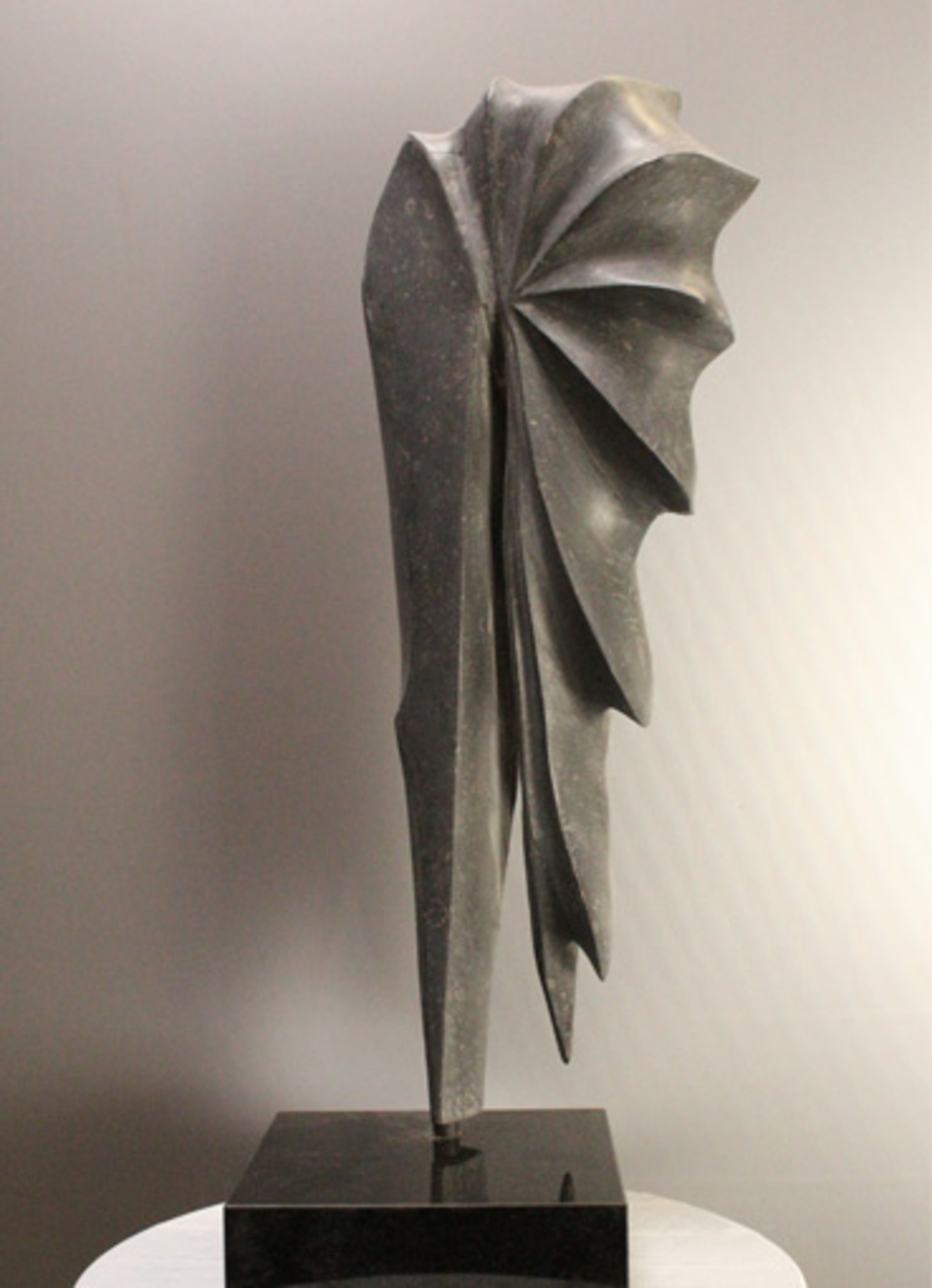 Hans van Uden werkt met harde natuursteen waarbij het een deel van de oorspronkelijke steen laat bestaan . Daarnaast combineert hij steen met Kortenstaal