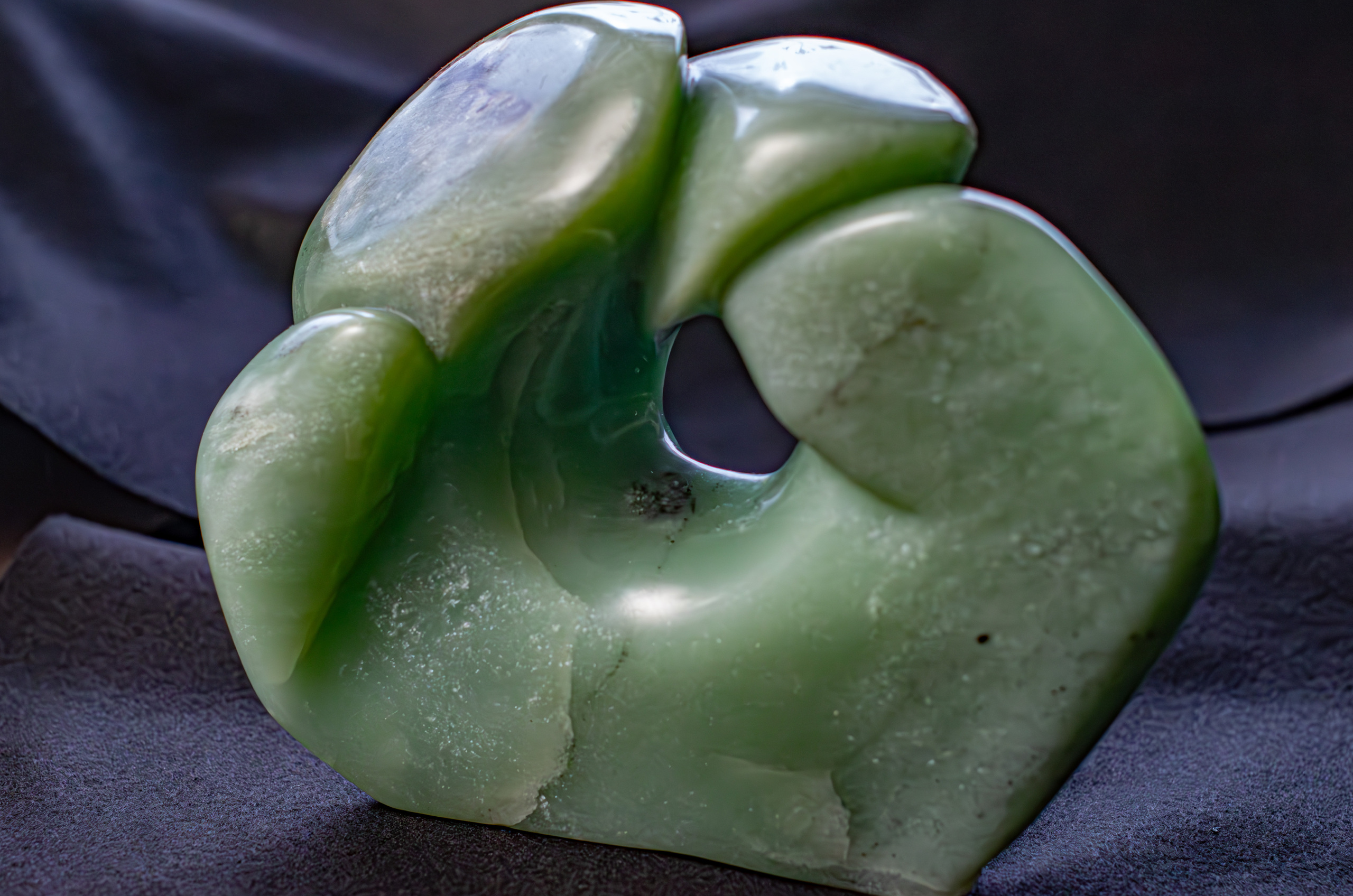 Zijde 1: Wind in de zeilen, golfslag, het geeft een gevoel van overgave en vrijheid. Zijde 2: Okay, een uitdrukking van positiviteit Indisch speksteen helder groen Handmade, de steen vormt zich vanzelf tot een idee.