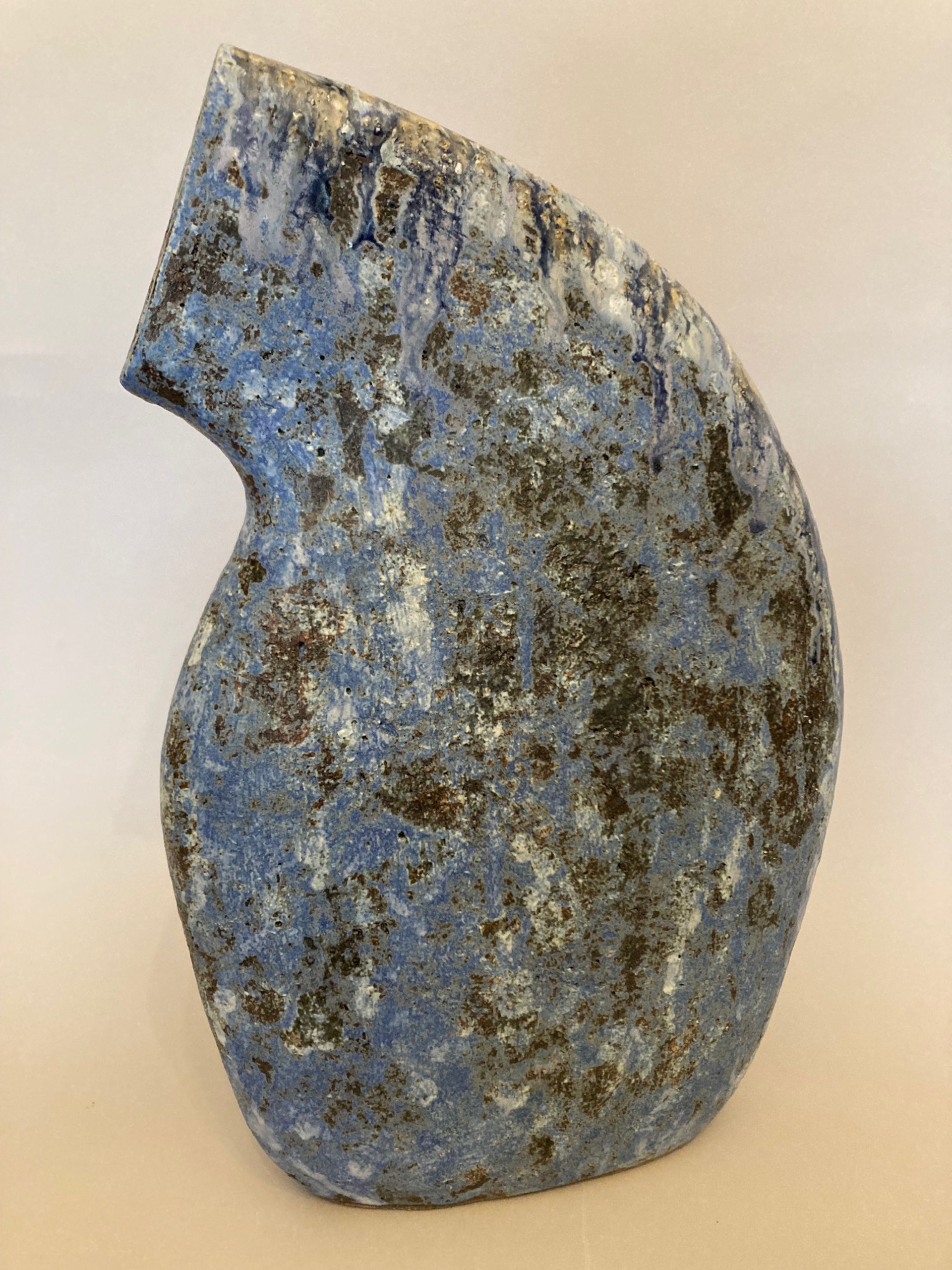 De objecten die ik maak zijn handgevormd. Ze zijn vooral bedoeld om naar te kijken, niet om te gebruiken. Ik hou van de huid van de klei en laat die graag zien. Door niet altijd het hele oppervlak te glazuren blijft het ruige uiterlijk van het materiaal zichtbaar. De laatste jaren heb ik veel met asglazuur gewerkt. Die as is steeds anders van samenstelling, waardoor het glazuur een grote mate van onvoorspelbaarheid heeft. Dat houdt het spannend.