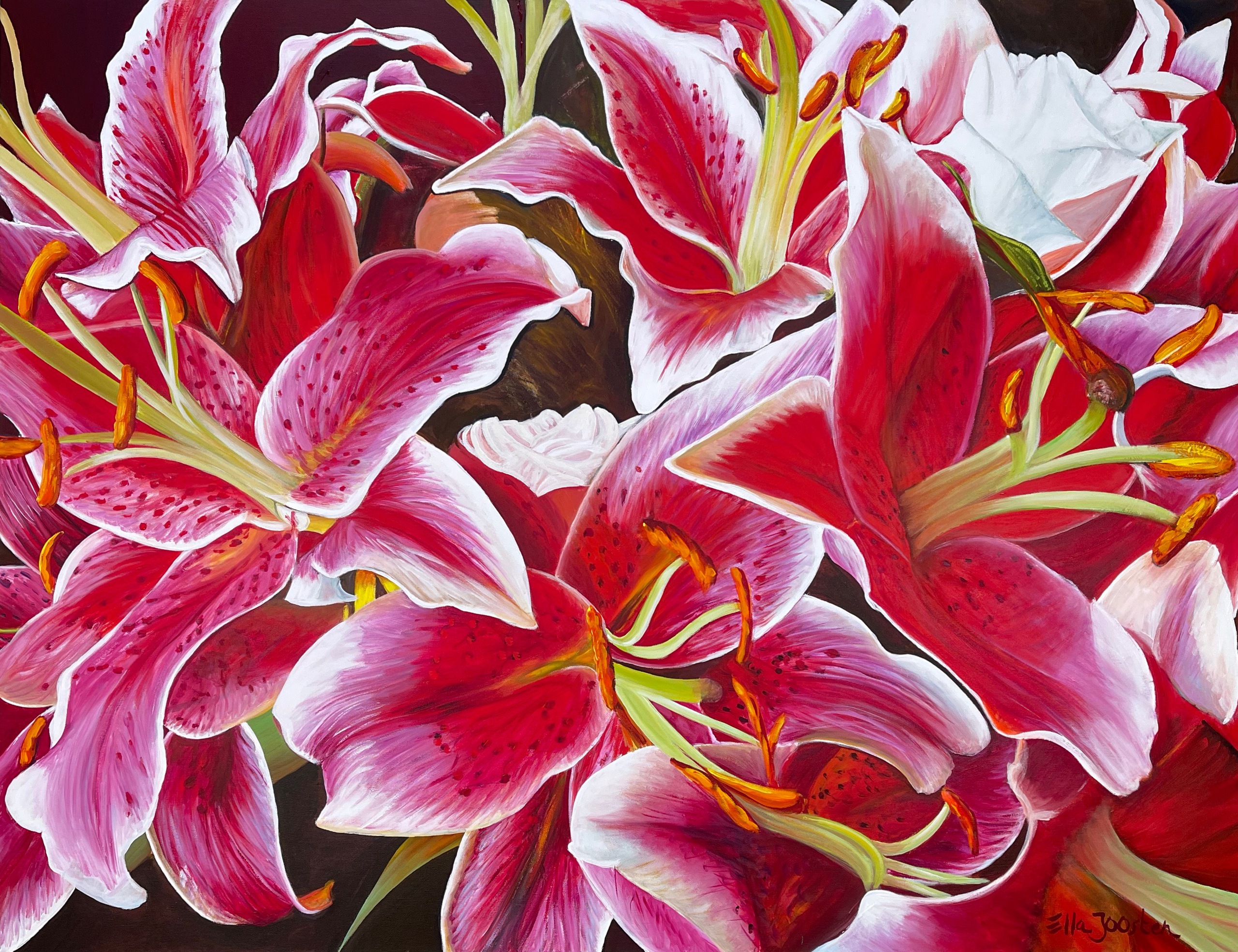 Ella Joosten heeft zich in de loop der jaren ontwikkeld tot een veelzijdig professioneel beeldend kunstenaar. In haar ruime atelier in Eindhoven maakt ze acrylschilderijen in alle formaten, gemengde technieken en houten objecten. Veel bedrijven, particulieren en instellingen hebben haar werk aangekocht. Ze heeft opdrachten uitgevoerd voor gemeenten, bedrijven en particulieren. Ella Joosten heeft tal van exposities op haar naam staan, in zowel binnen als buitenland. Haar werk is in kunstboeken gereproduceerd en in publicaties beschreven.