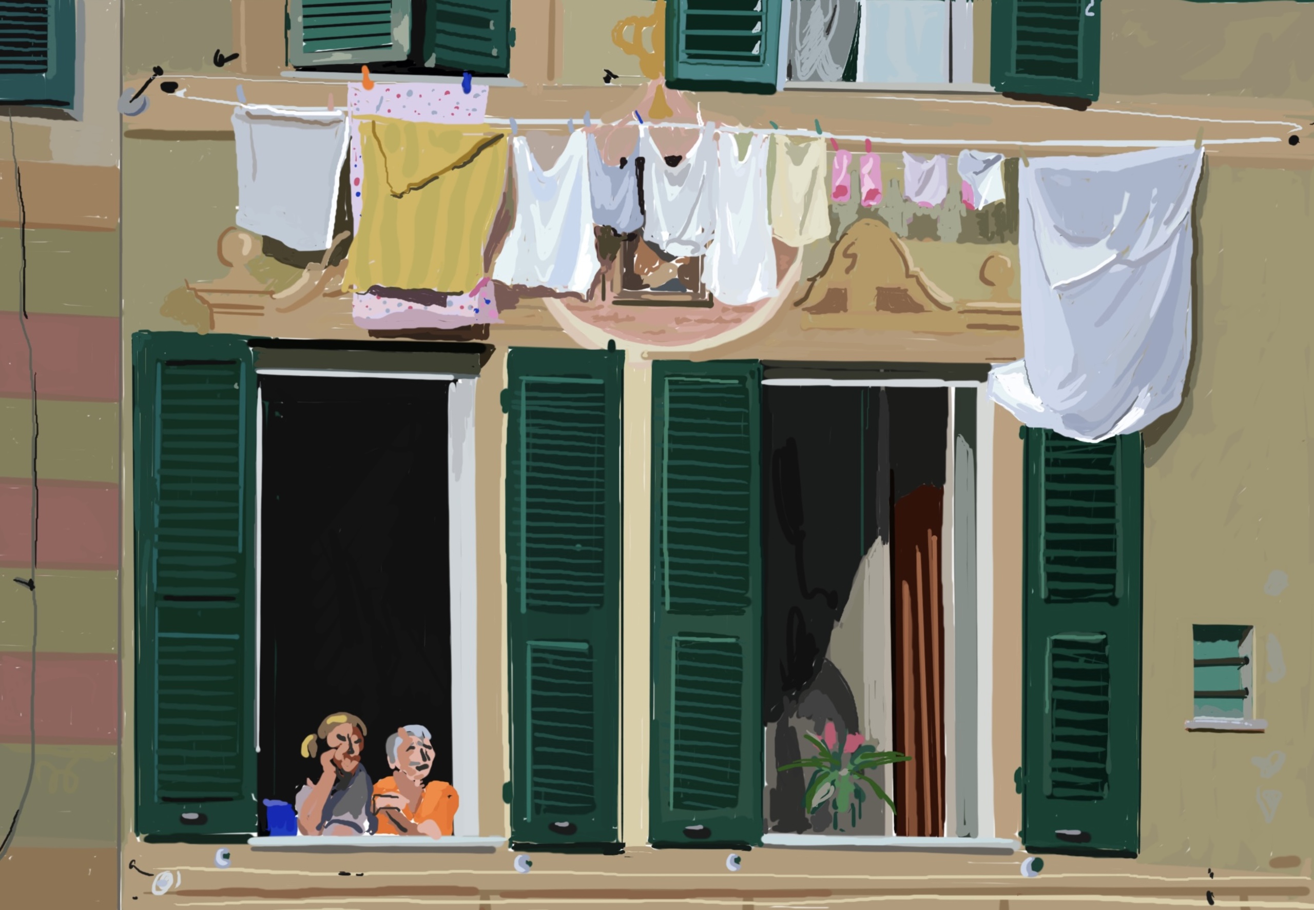 Wasgoed Was Waslijn Wasknijper Kleding Kleren Hemd Blouse Sok Italië Frankrijk Luiken Hout Huizen Ramen Raam