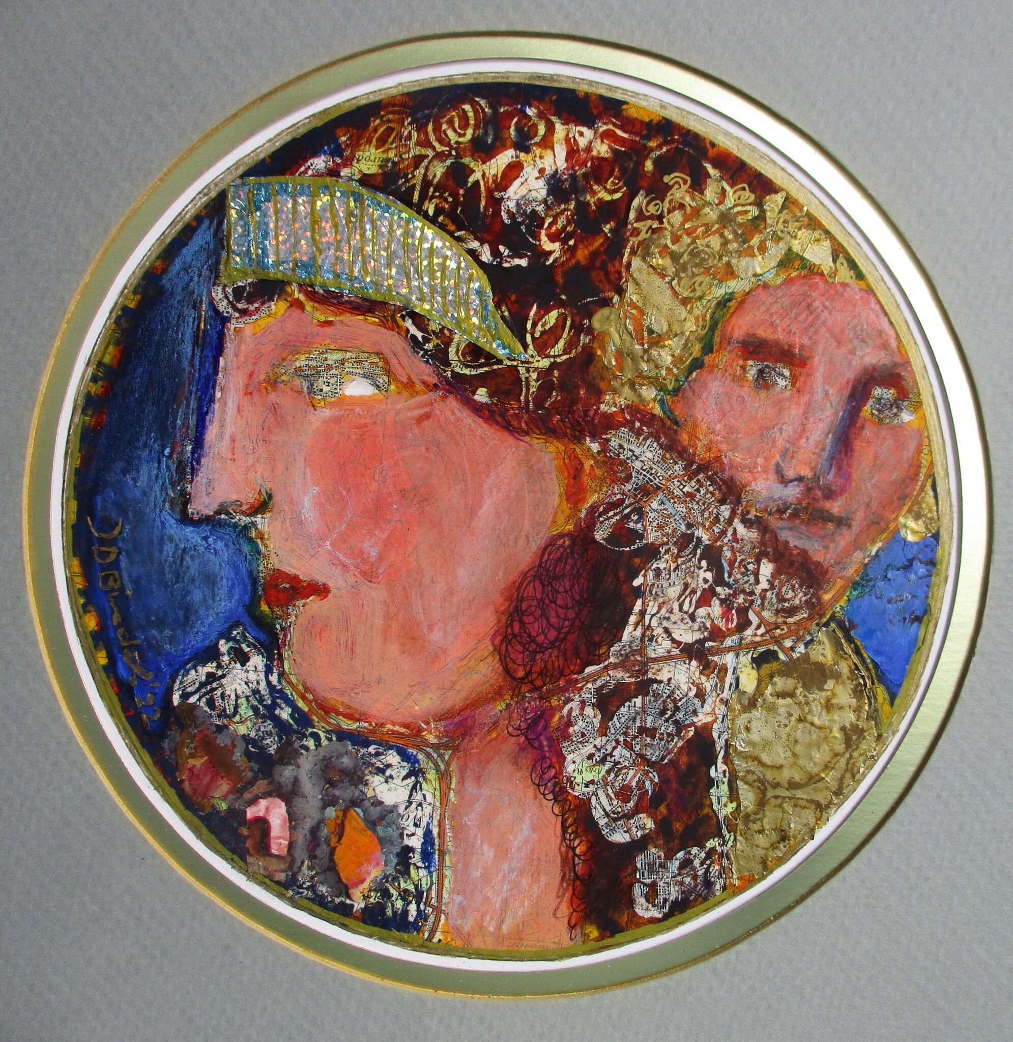 Gemengde techniek op landkaart (met collage , in cirkel )
