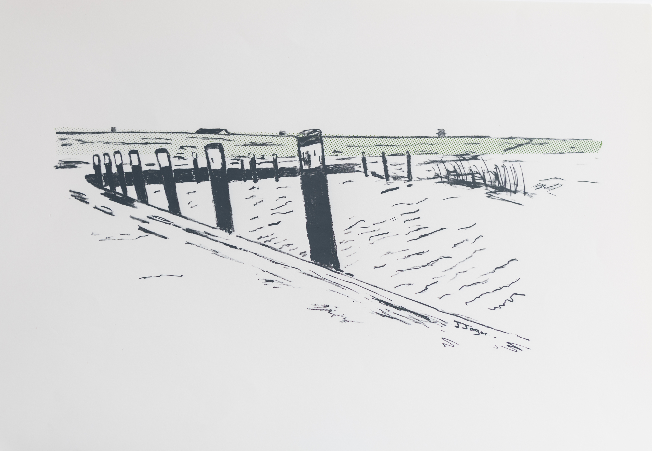 Jan Jager heeft een grafische achtergrond. Na jarenlang als drukker te hebben gewerkt, maakt hij tegenwoordig zeefdrukken van landschappen die hij interessant vindt.