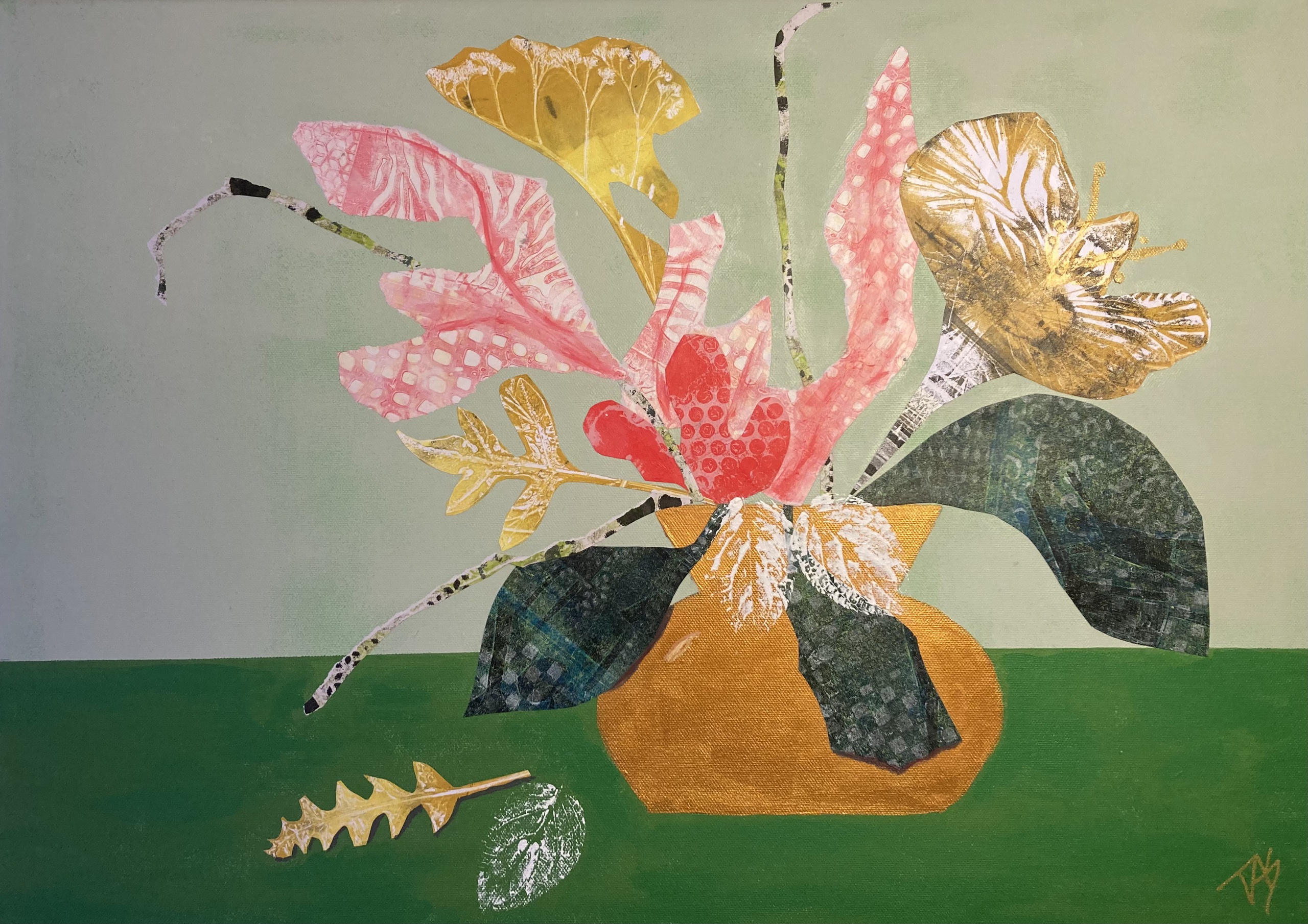 Bloemen Vaas Natuur Acrylverf Collage Flowers Den Adel Thelma Gelprints