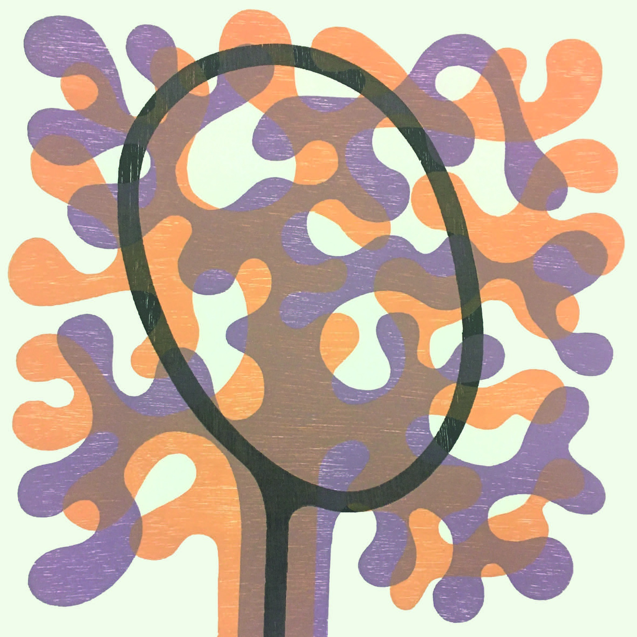 Breinboom - Brain Tree Houtdruk - sjabloondruk op papier, 3 kleuren, oplage 4.