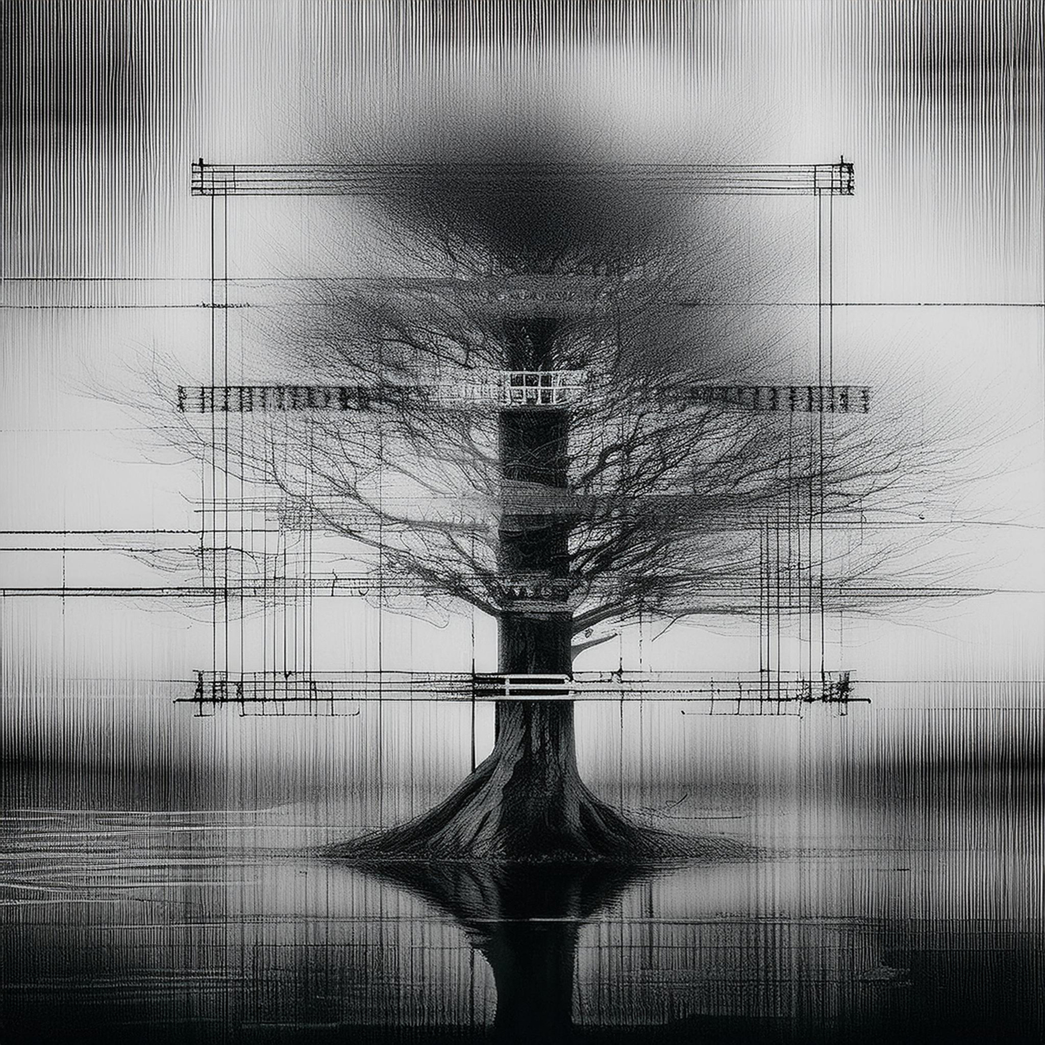 Landschap Fotografie Kunst Bomen Boom Grafiek Lijnen Zwartwit Hedendaagsekunst Klimaatverandering Ai Digitalekunst