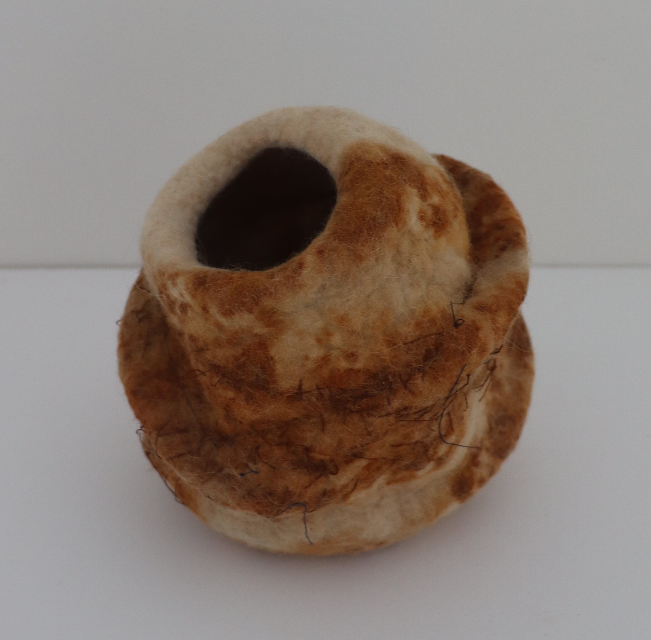 Marian Kastelein werkt met vilt (naturellen), vaak gecombineerd met andere materialen. Van het vilt maakt zij objecten, van divers formaat.