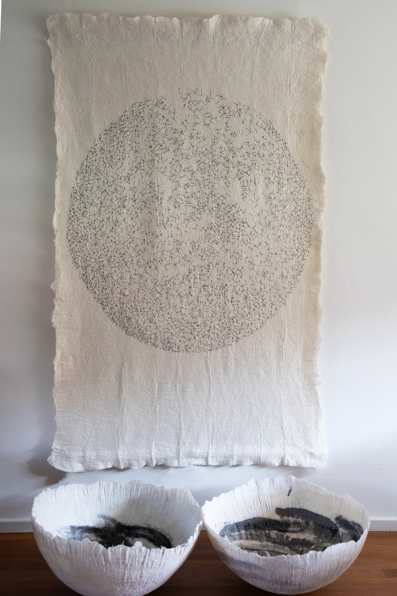 Marian Kastelein werkt met vilt (naturellen), vaak gecombineerd met andere materialen. Van het vilt maakt zij objecten, van divers formaat.