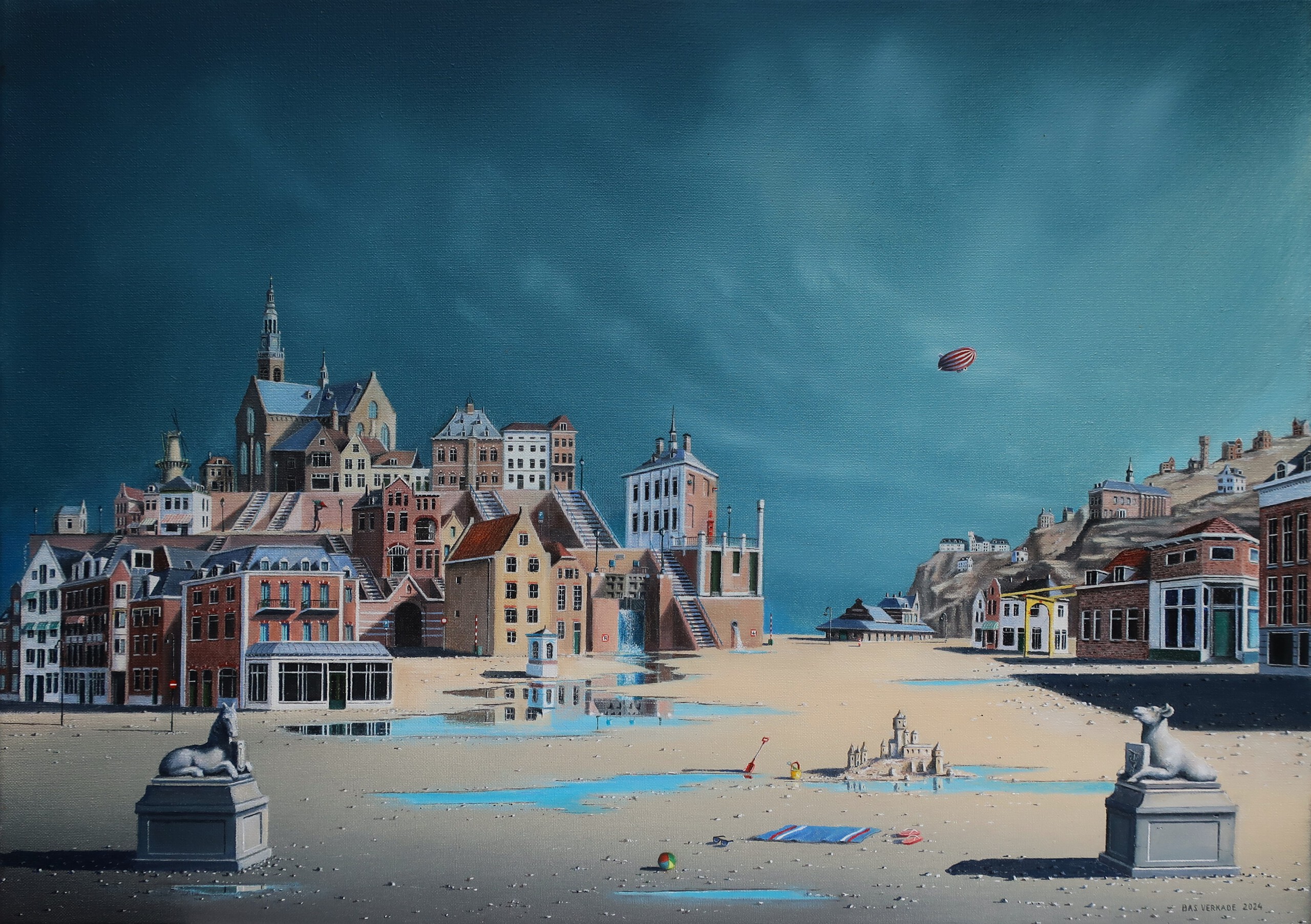 Bas Verkade schildert surrealistische taferelen (olieverf) met fotografische precisie.Zeer verfijnd werk op papier ,doek en paneel.