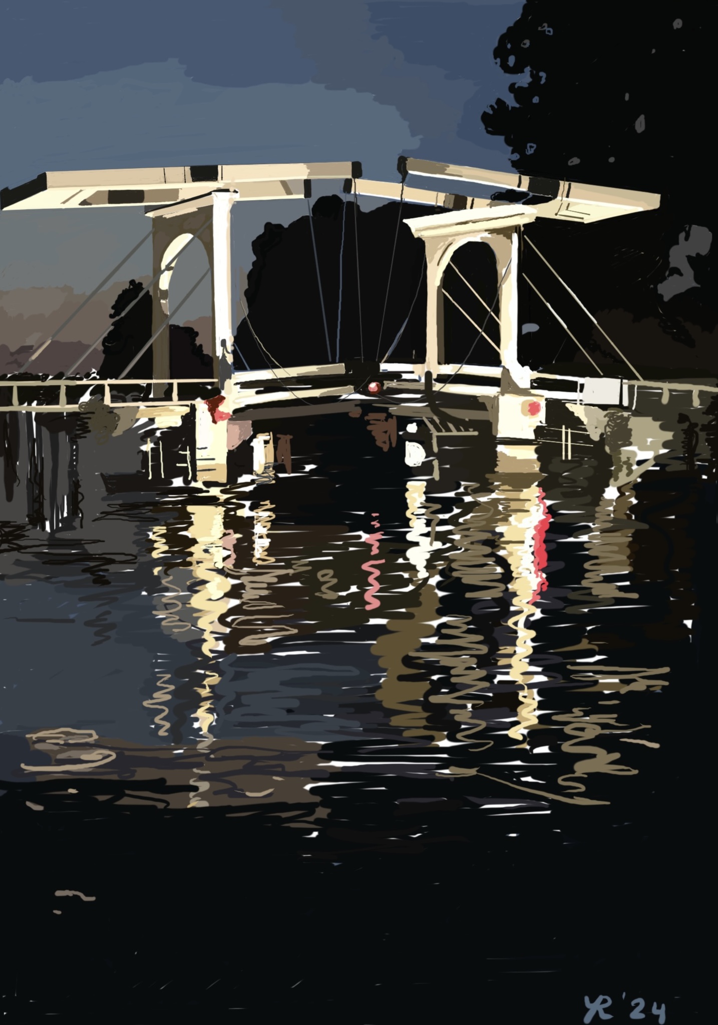 Lange Vechtbrug Weesp in de avond