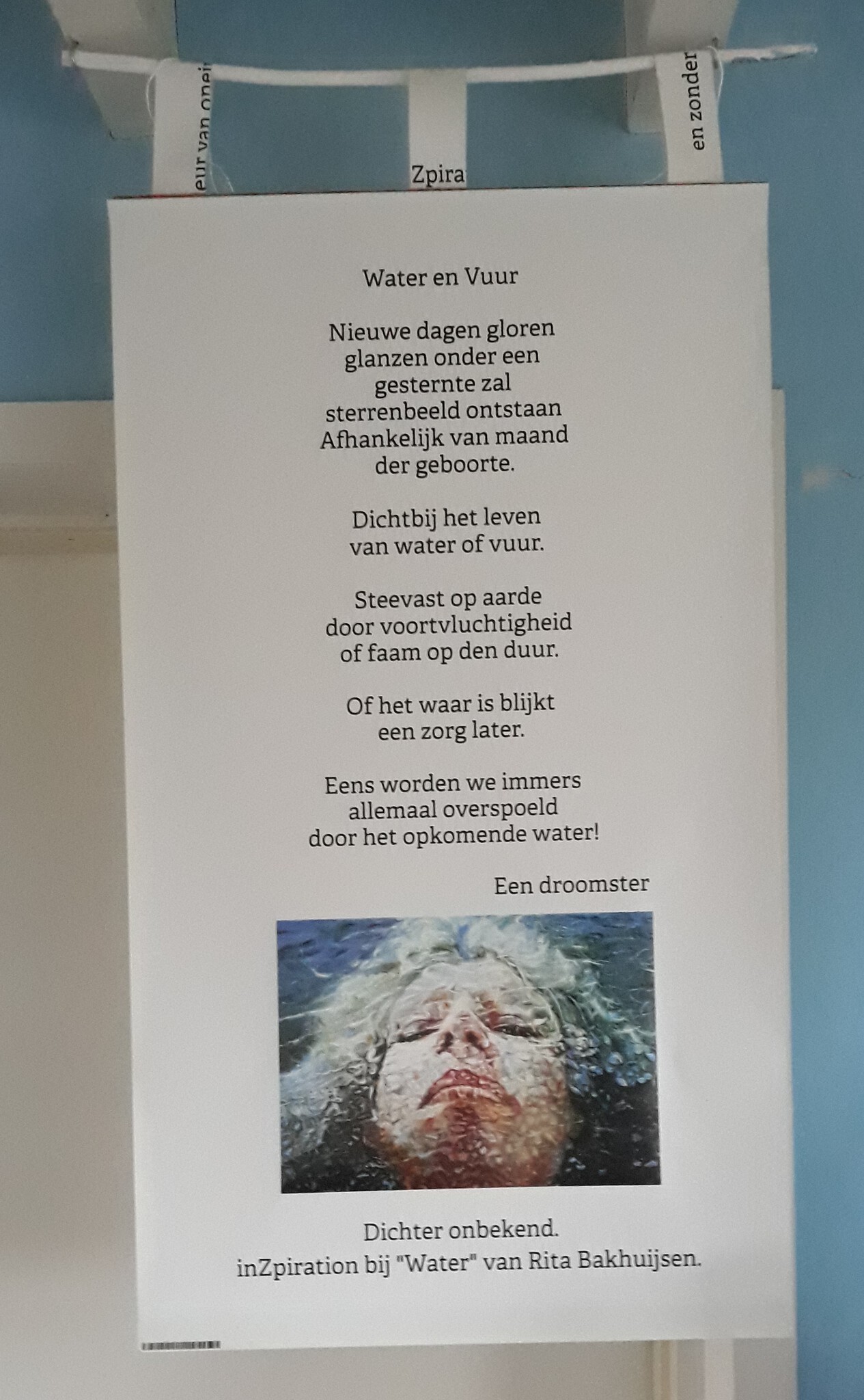 Banner kunststof met gedicht over water en geschilderd zelfportret
