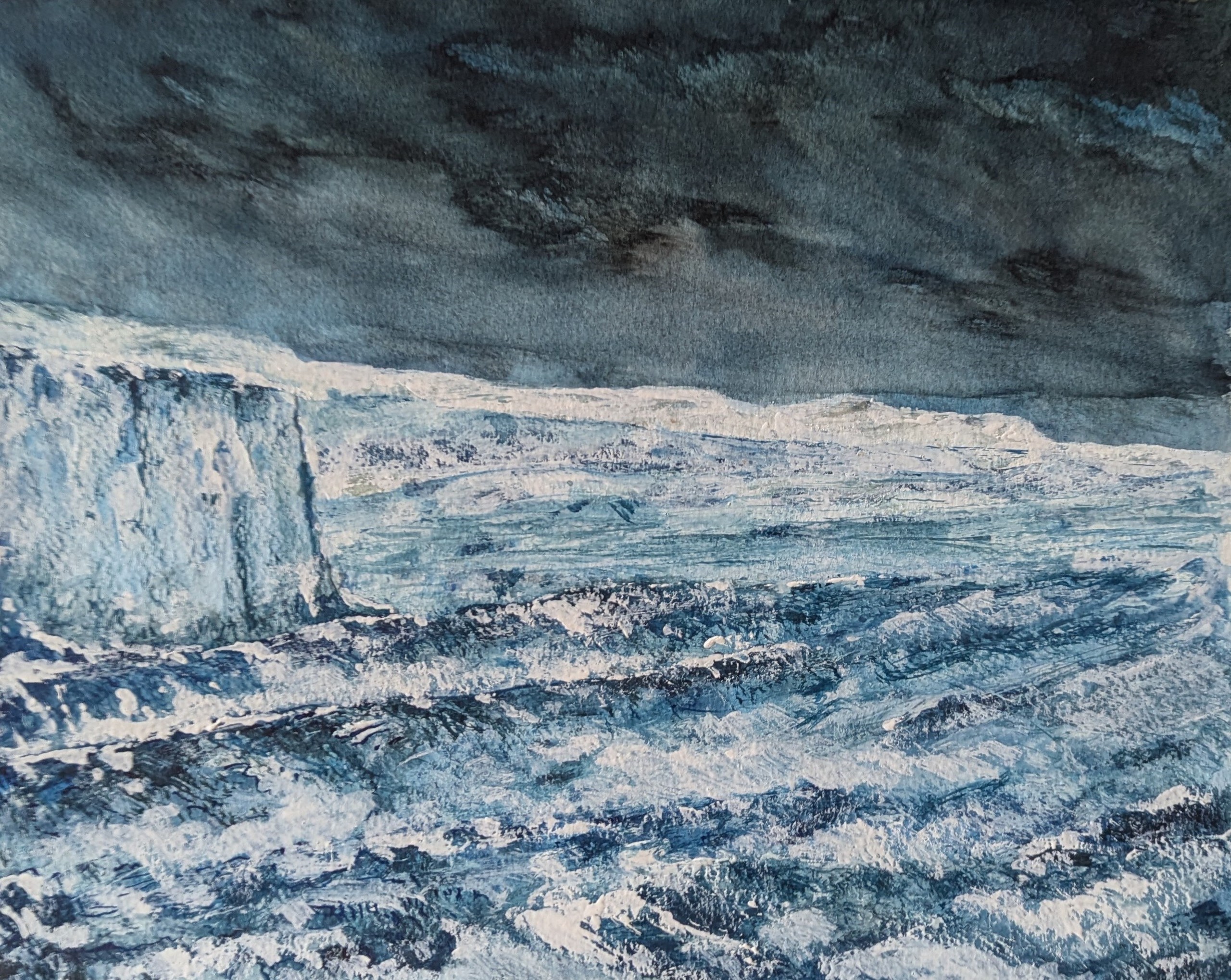 Sneeuwlandschappen hebben iets fascinerends. Tijd en ruimte lijken op te lossen in de oneindigheid en de stilte. Sneeuwlandschappen hebben iets magisch. Hoewel ik zelf geen wintersporter ben, heb ik wel een aantal keren 'geklommen' in de sneeuw, gletchers in Italië en IJsland. Helaas lijken de winters in Nederland verzwolgen door de opwarming van de aarde. De aquarel is gemaakt op 300grams Canson Montval papier.