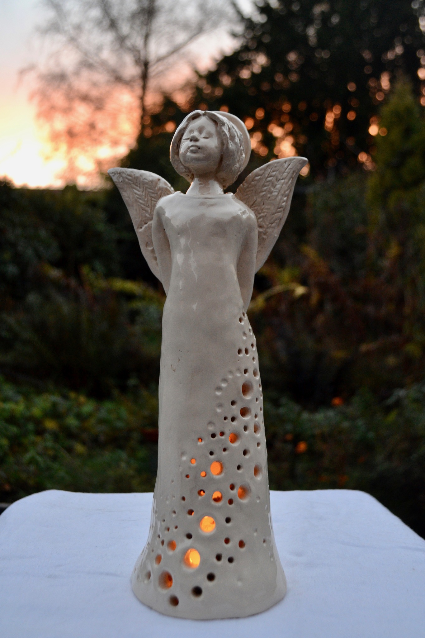 Beeld Met En Engel Troost Witte Ontvangen Beeldje Engelen Beschermengel Kaars Waxinelichtje Geven Rok Theelichtje Altaar Uitvaart Kerstengel
