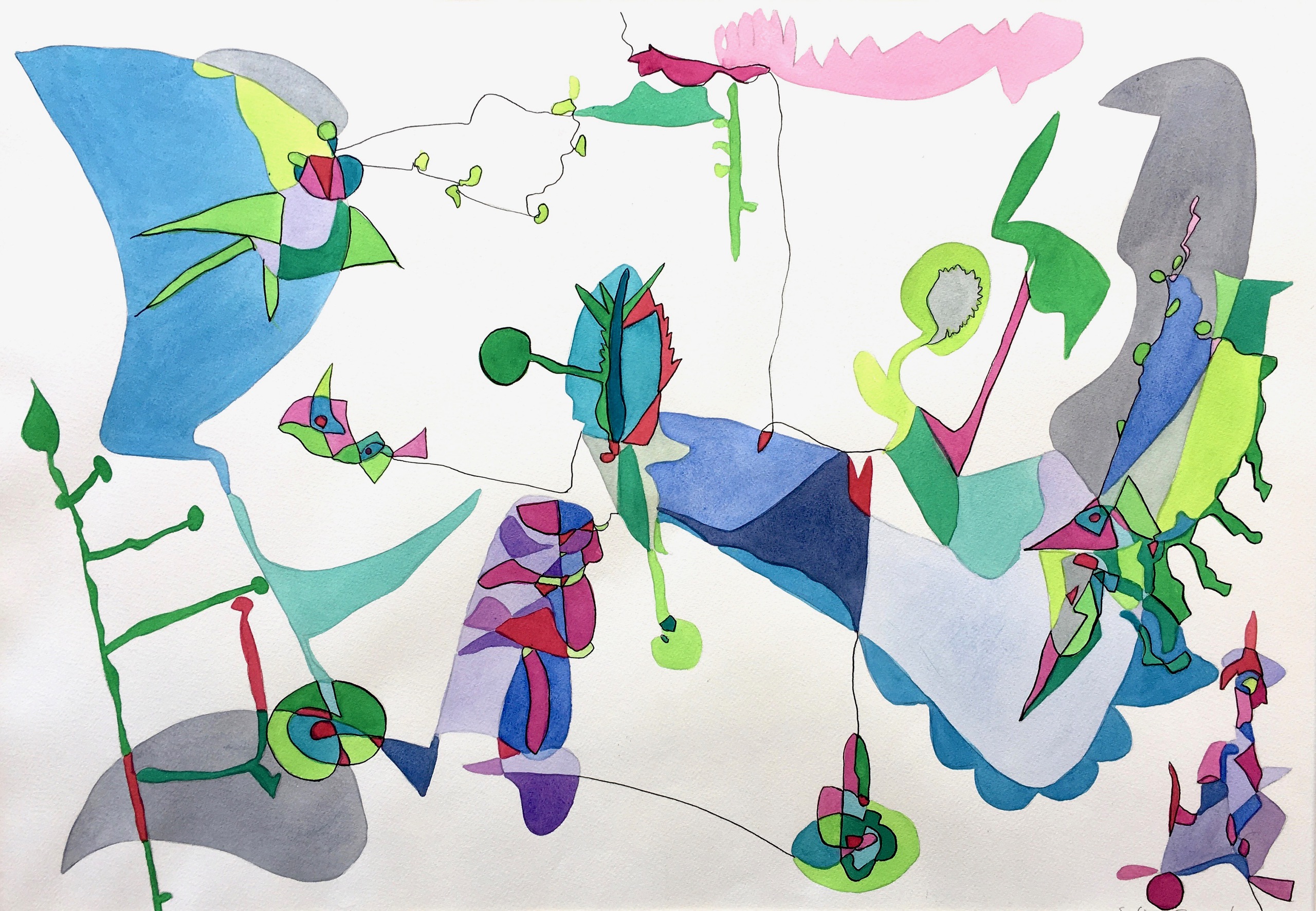 Ingekleurde intuïieve lijntekening geinspireerd op de natuur.