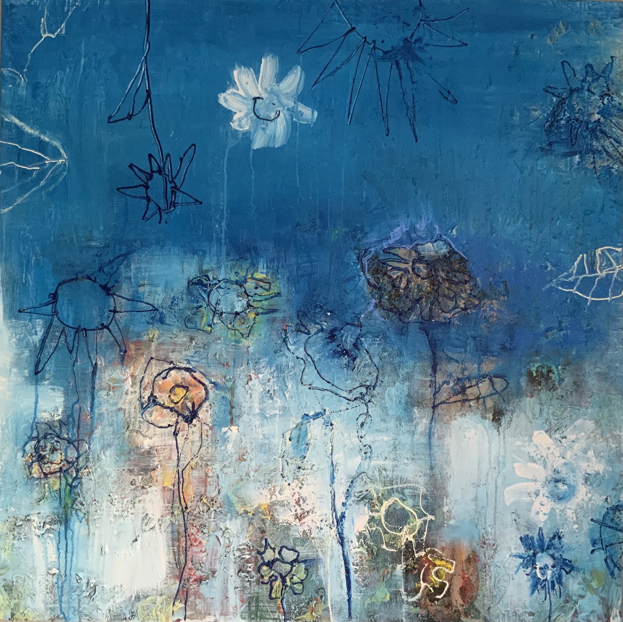 Flower Semi Abstract Figurative Emotion Blue Structure Drops Sand