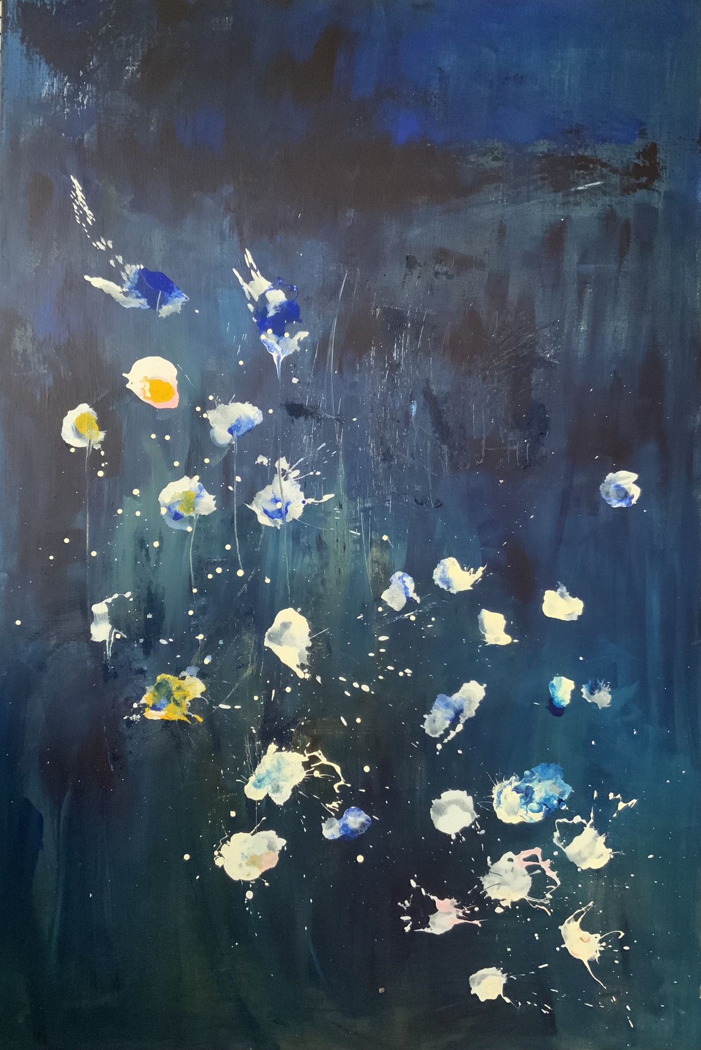I Sean abstract painting but I can see flowers too or are there fishes in the sealt two diving personen or two birds.......but it's not what you look at that matters, it's what YOU see. i used acrylverf, stand and liquid print.