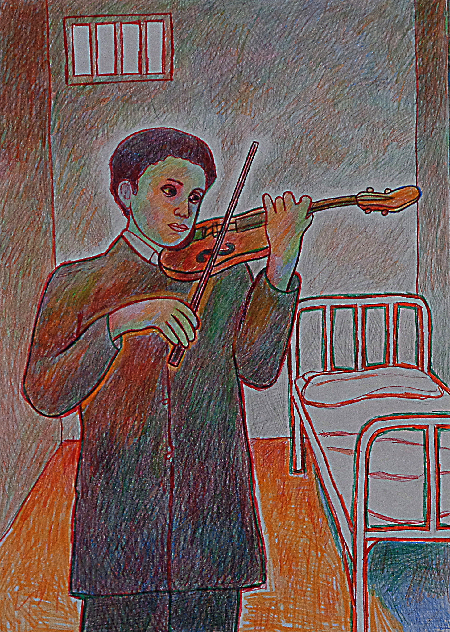 Man Portret Muziek Tragiek Omgeving Violist Musicus