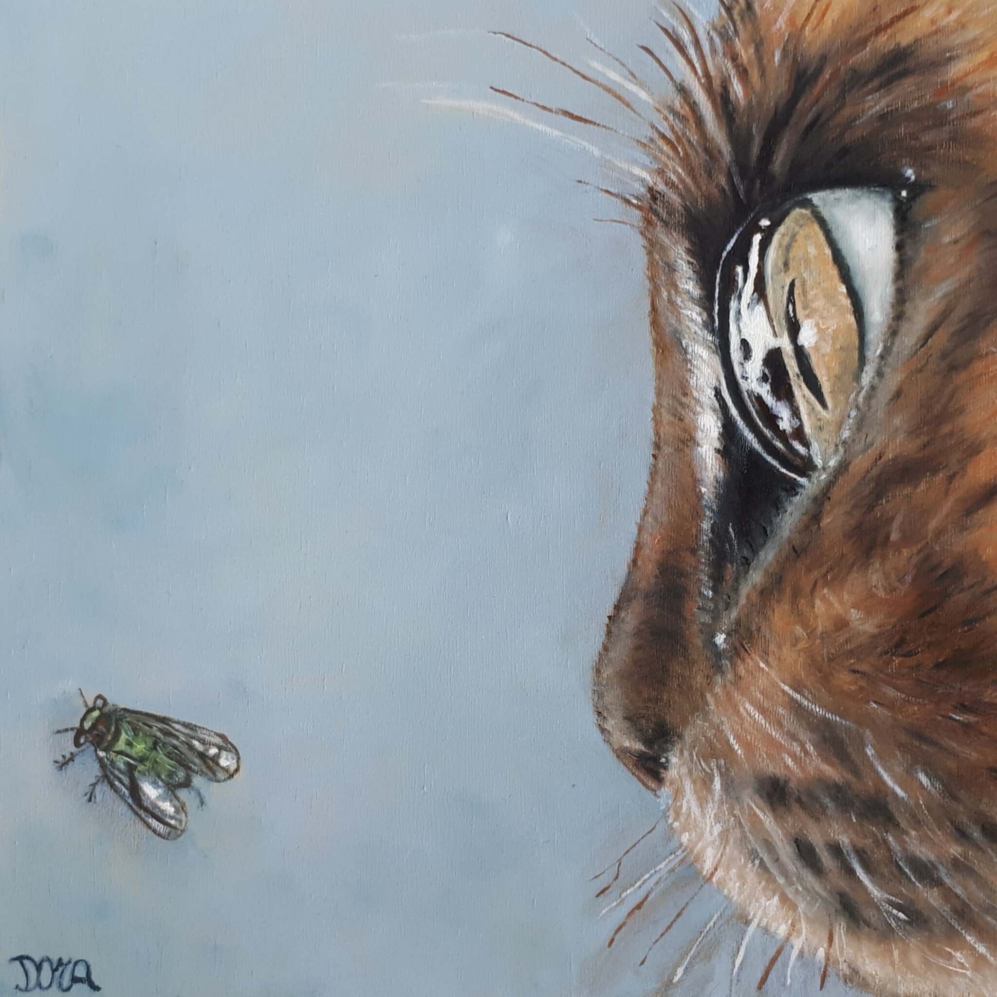 Dieren kennen we vaak menselijke eigenschappen toe (antropomorfisme) in mijn schilderijen gedragen de dieren zich als mensen.