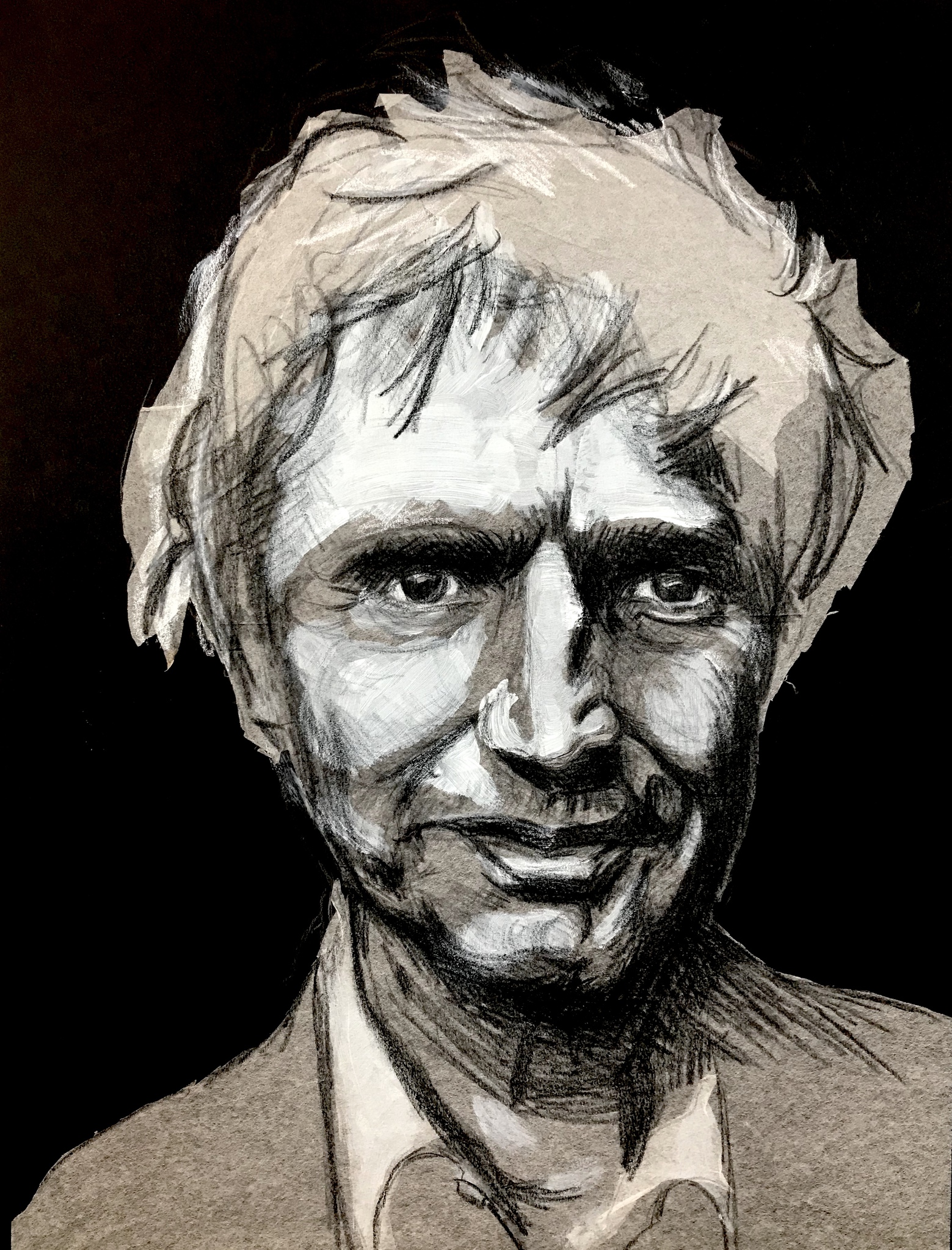 Wit Zwart Portret Mixed Media Papier Krijt Potlood Van Erik Japans Lijm Looy