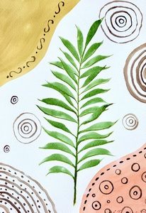 Schilderij Abstract Acryl Gold Groen Art Gouden Aquarel Kunst Painting Bladeren Moderne Green Met En Blauwe Leaves Watercolor Takken Zomer Groene Kunstwerk Achtergrond Botanical Minimalistische
