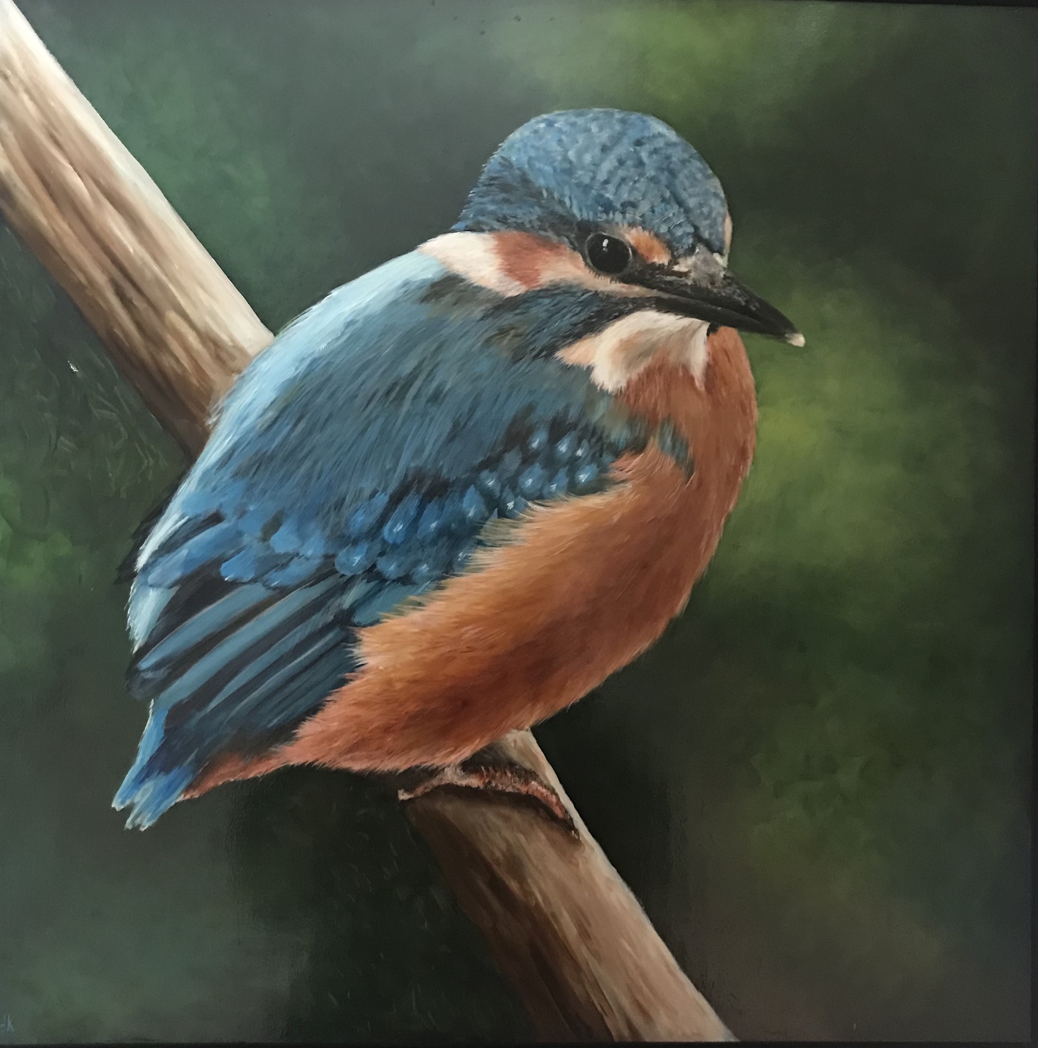IJsvogel olieverf op paneel met zwarte baklijst 60x60 cm