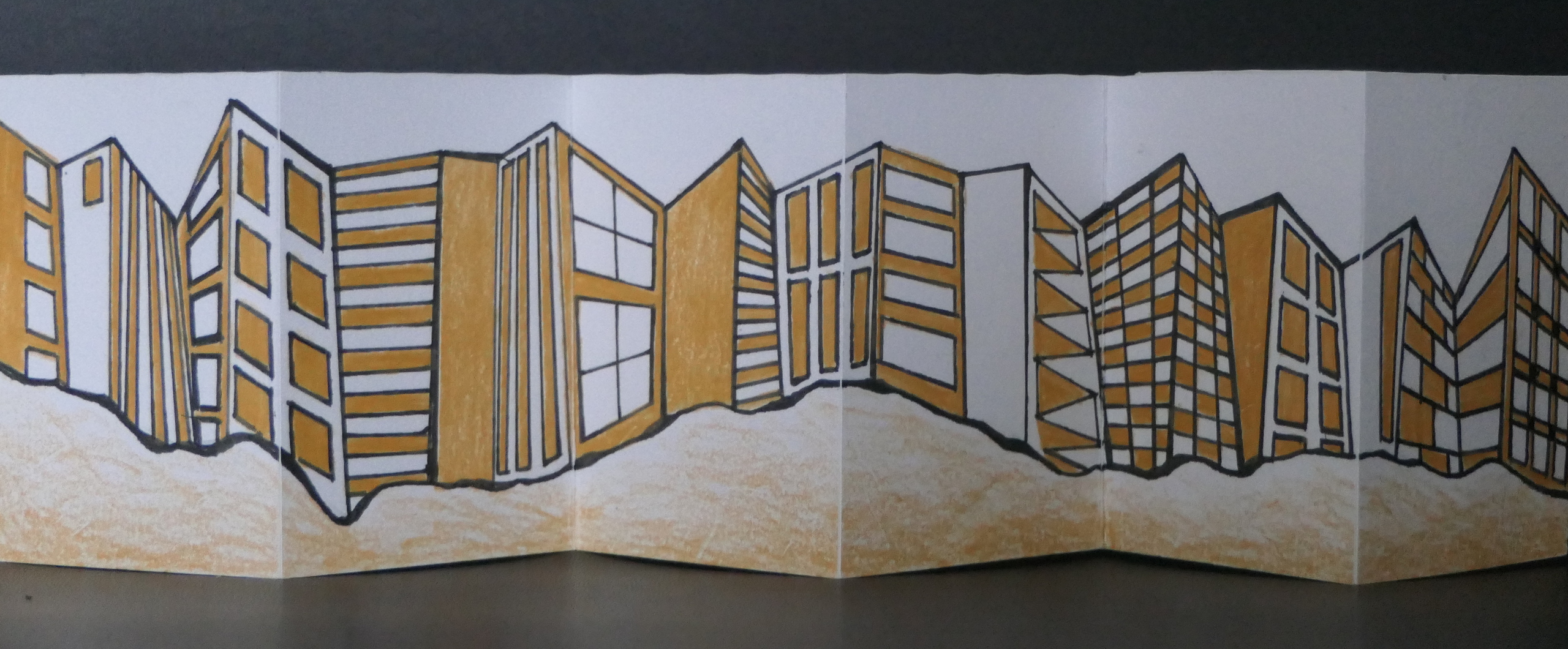 Geel Potlood Pen Architectuur Vouwen Kleur Gebouwen Flat Boekje Wonen Leporello Harmonicaboekje