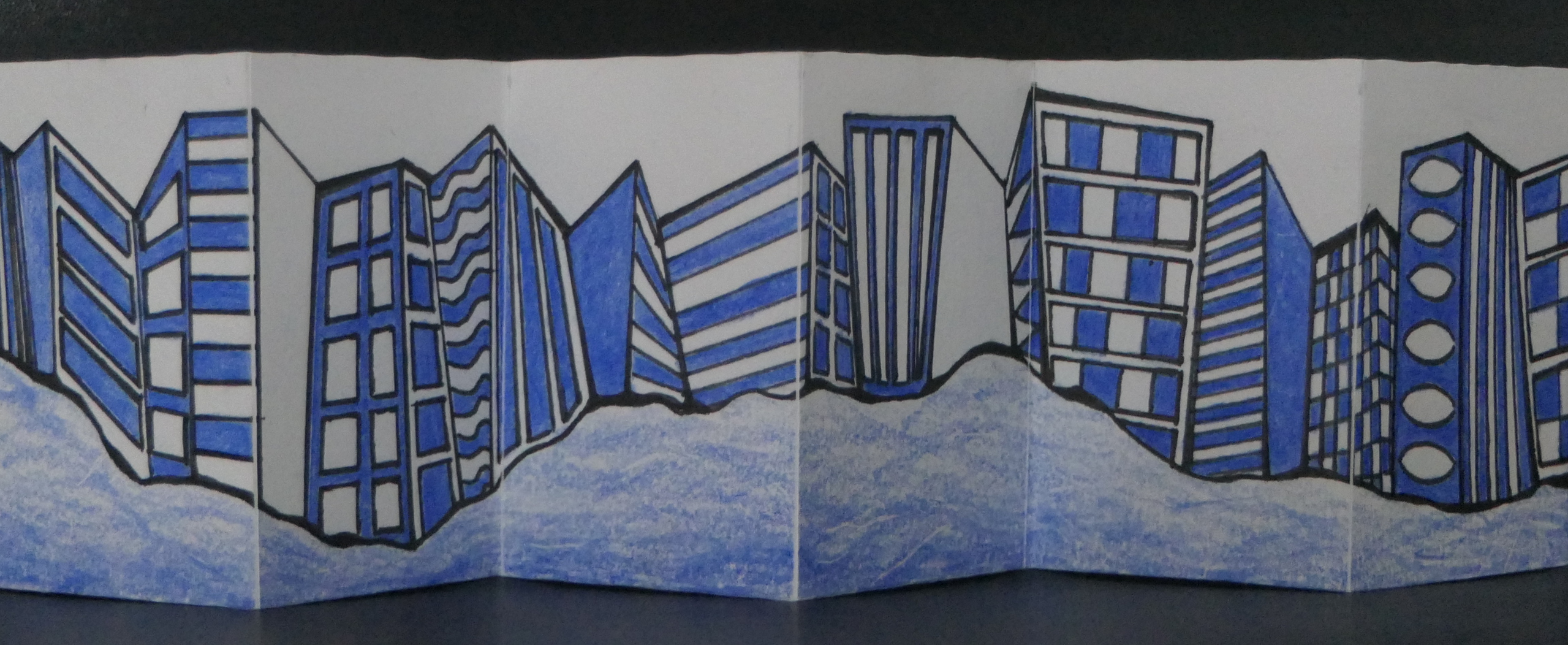 Blauw Potlood Pen Architectuur Gebouwen Flat Gebouw Boekje Wonen Leporello Harmonicaboekje