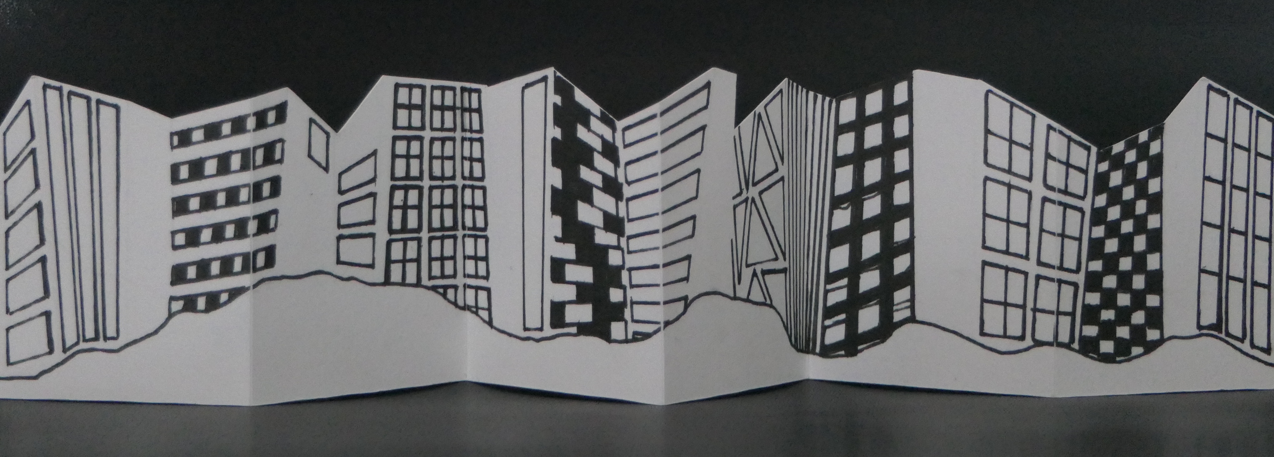 Wit Zwart Pen Gebouwen Flats Gevouwen Wonen Leporello Harmonicaboekje