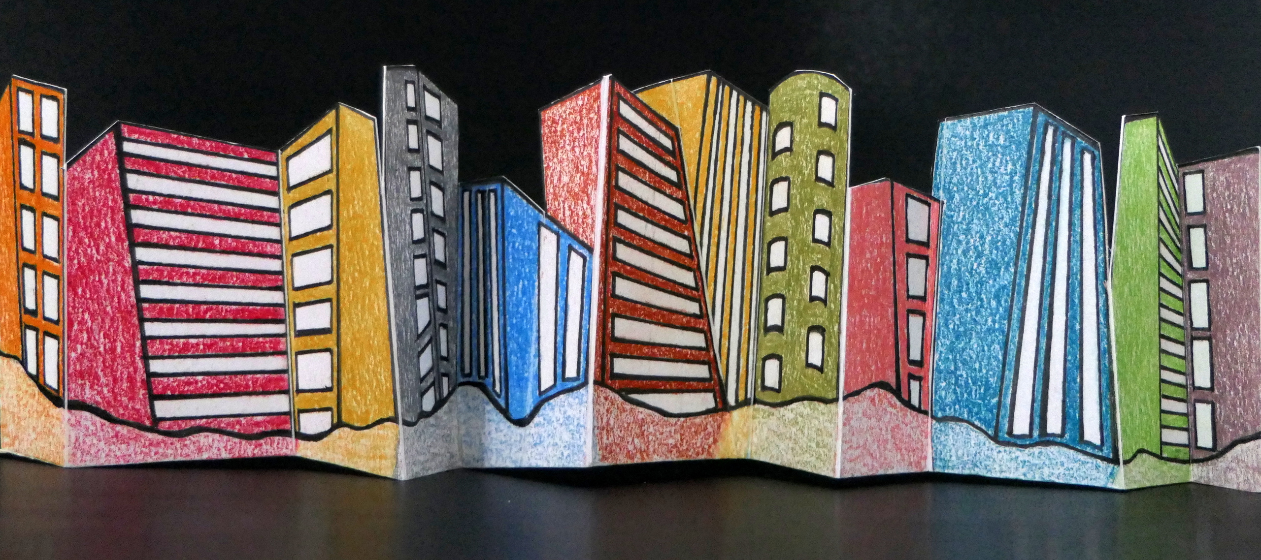 Kleurrijk Architectuur Vouwen Spiegeling Gebouwen Leporello Harmonicaboekje