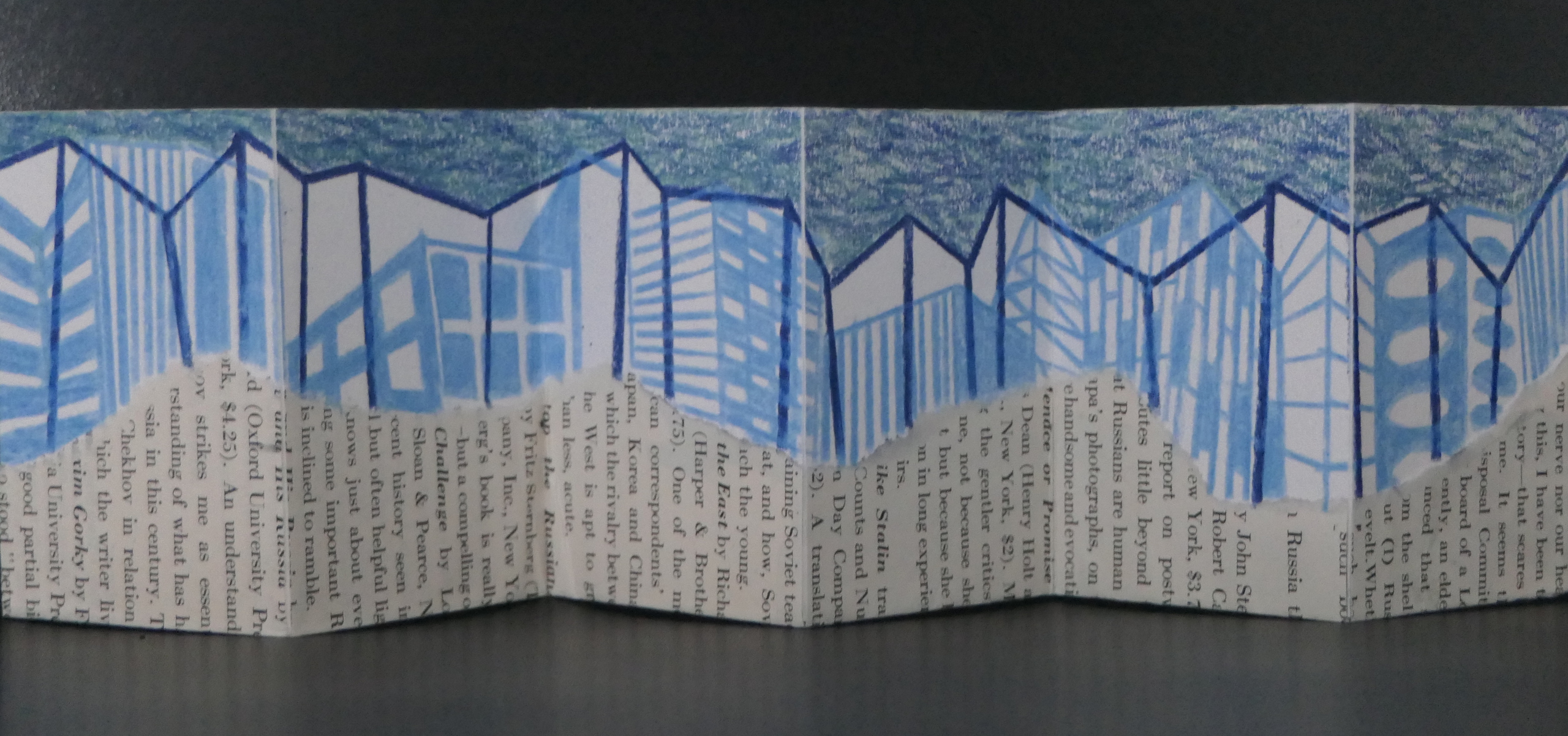 Wit Blauw Collage Tekst Gebouwen Kleurpotlood Flats Wonen Leporello Harmonicaboekje