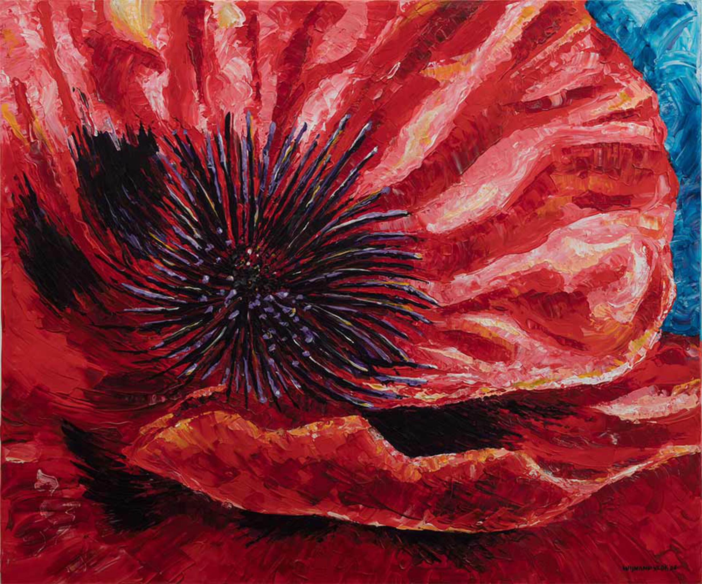Schilderij Acryl Spiritueel Natuur Klaproos Bloem Surreëel Minimalistisch Ruimtelijk Palletmes