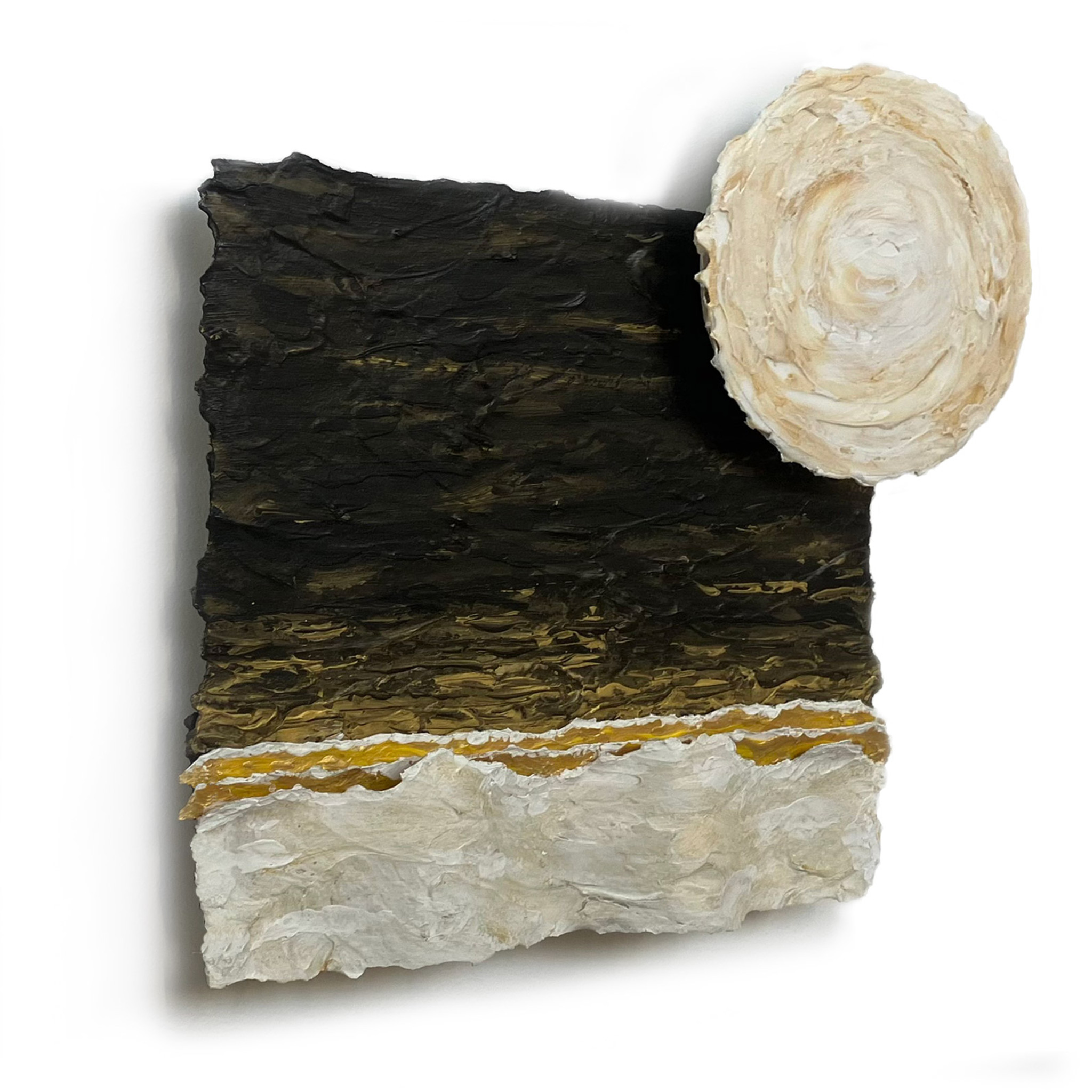 3D collage Materialen: hout - papier - metaal - acrylverf - verharder