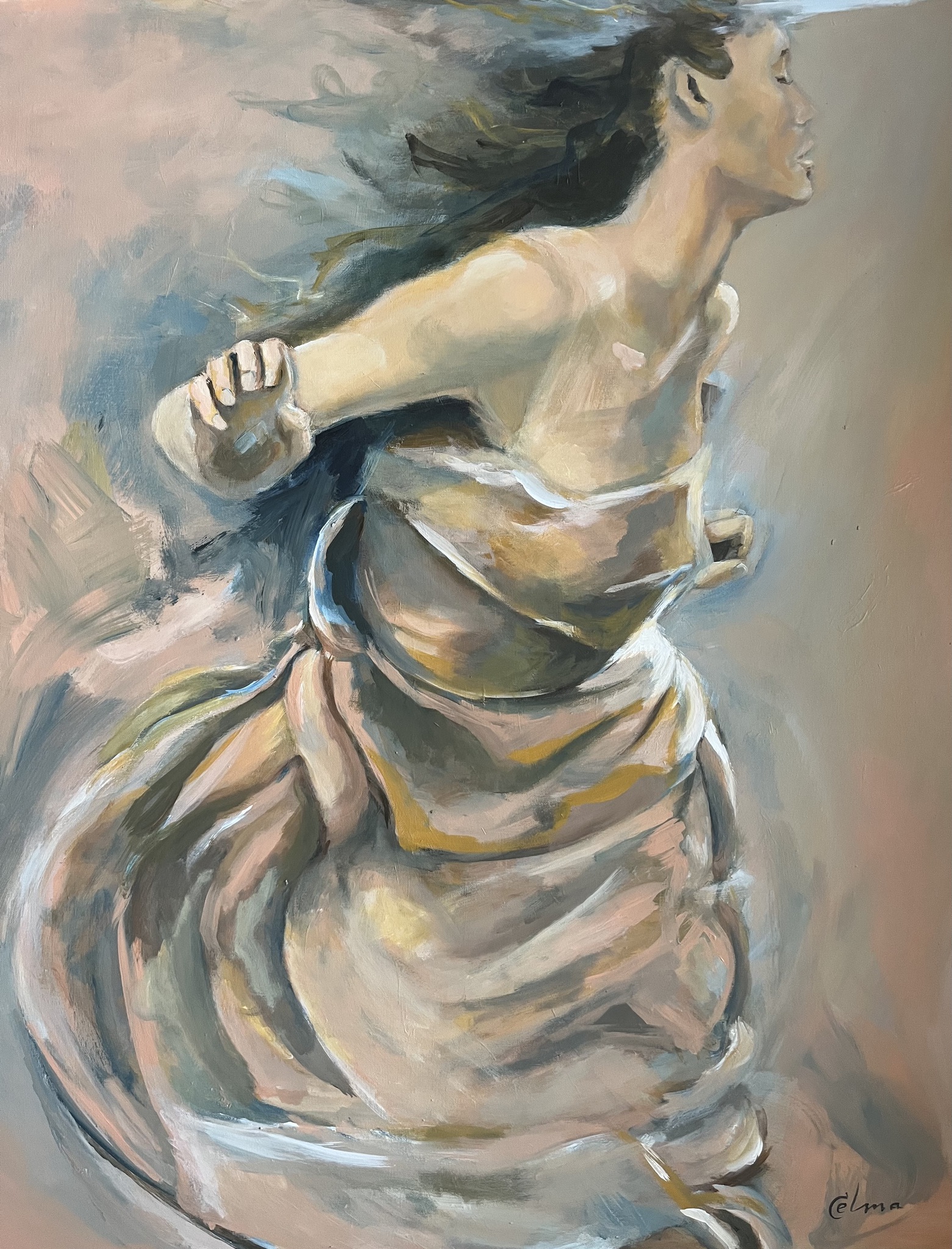 Vrouw Innerlijk Draaien Metafoor Water Leven Gevoel Schilderij Acryl