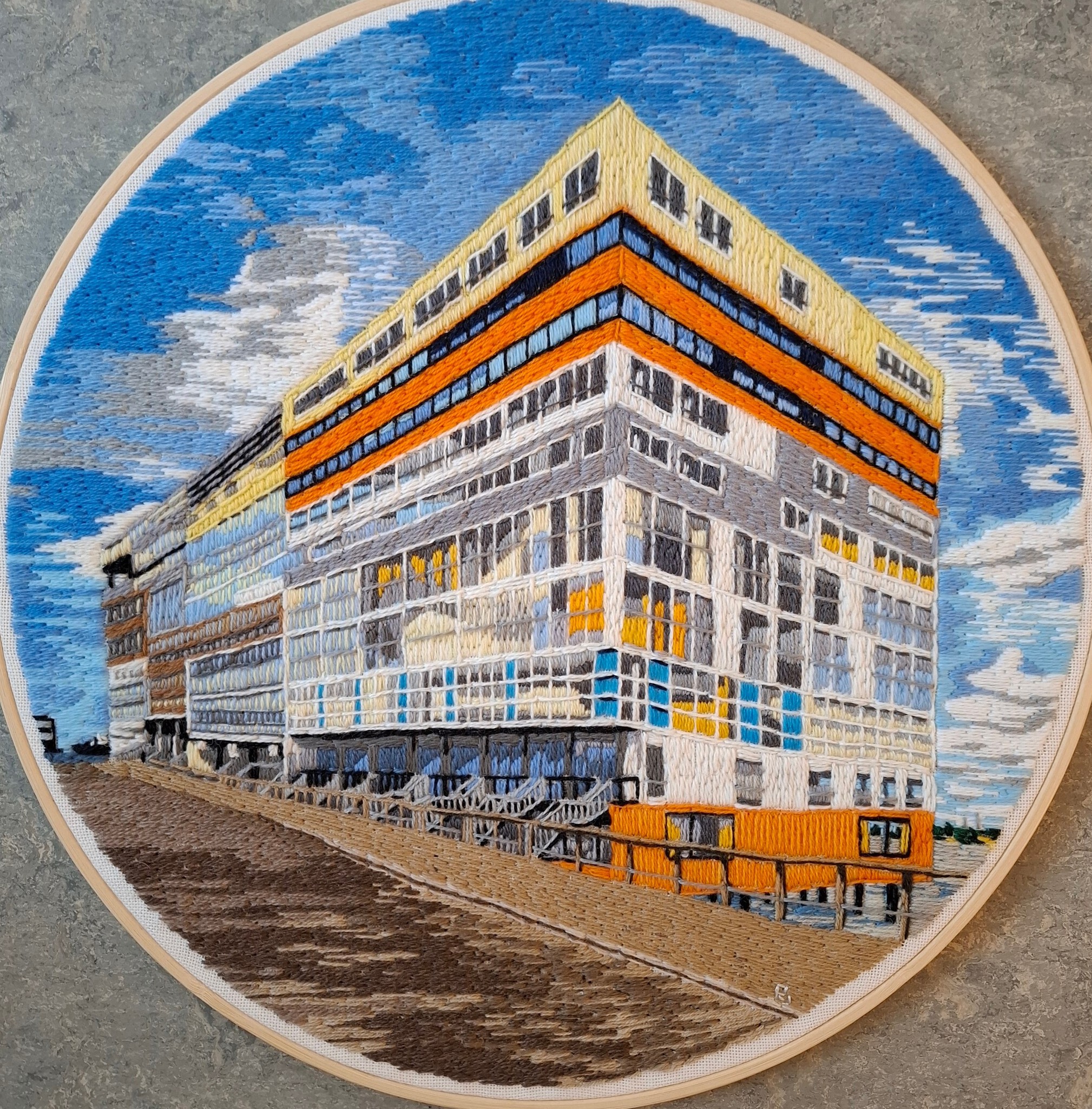 Het natuurlijke landschap en de stedelijke omgeving blijven voor mij de grootste inspiratie. Ik interpreteer wat ik zie en vertaal dat in inkt en aquarelverf op papier en in garens op doek. I