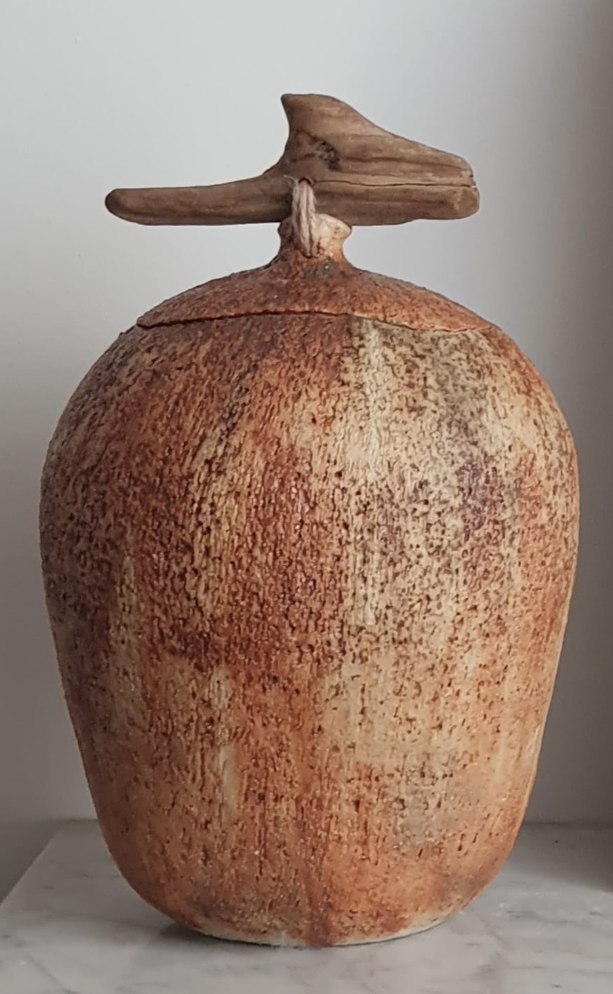 Urn met houten handgreep.