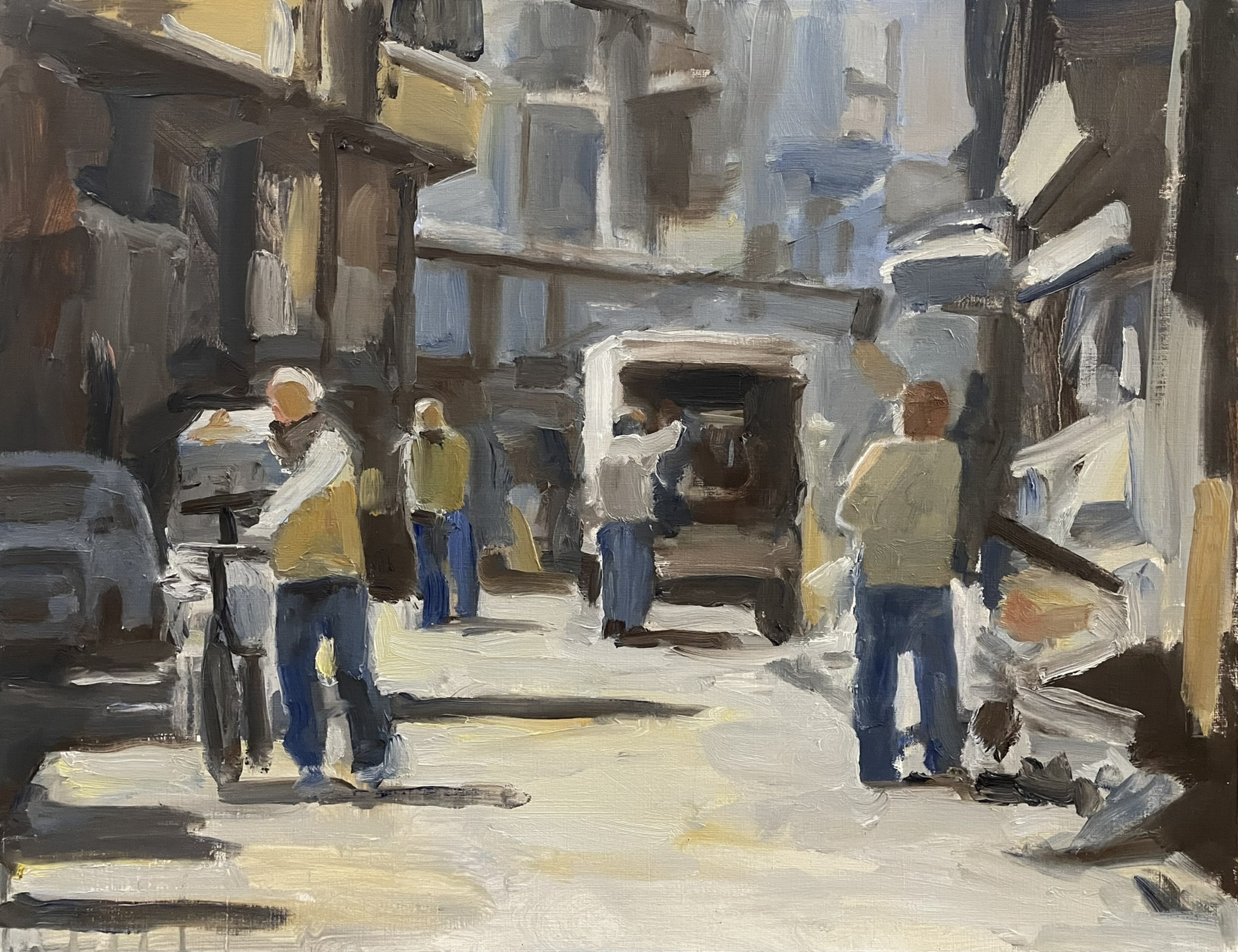 Ik schilder graag mensen in allerlei situaties, binnen of buiten.