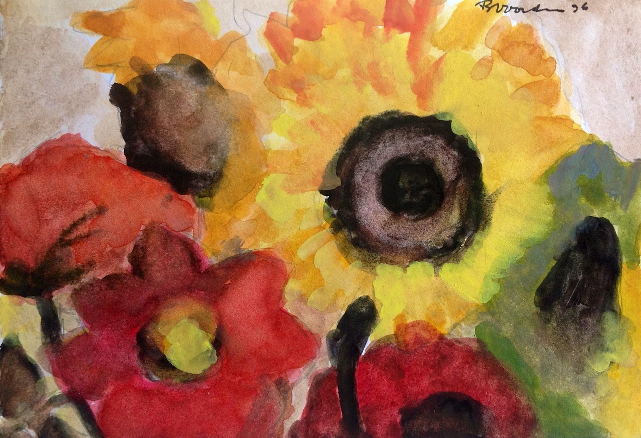 Aquarel Stilleven Zonnebloem Dahlia