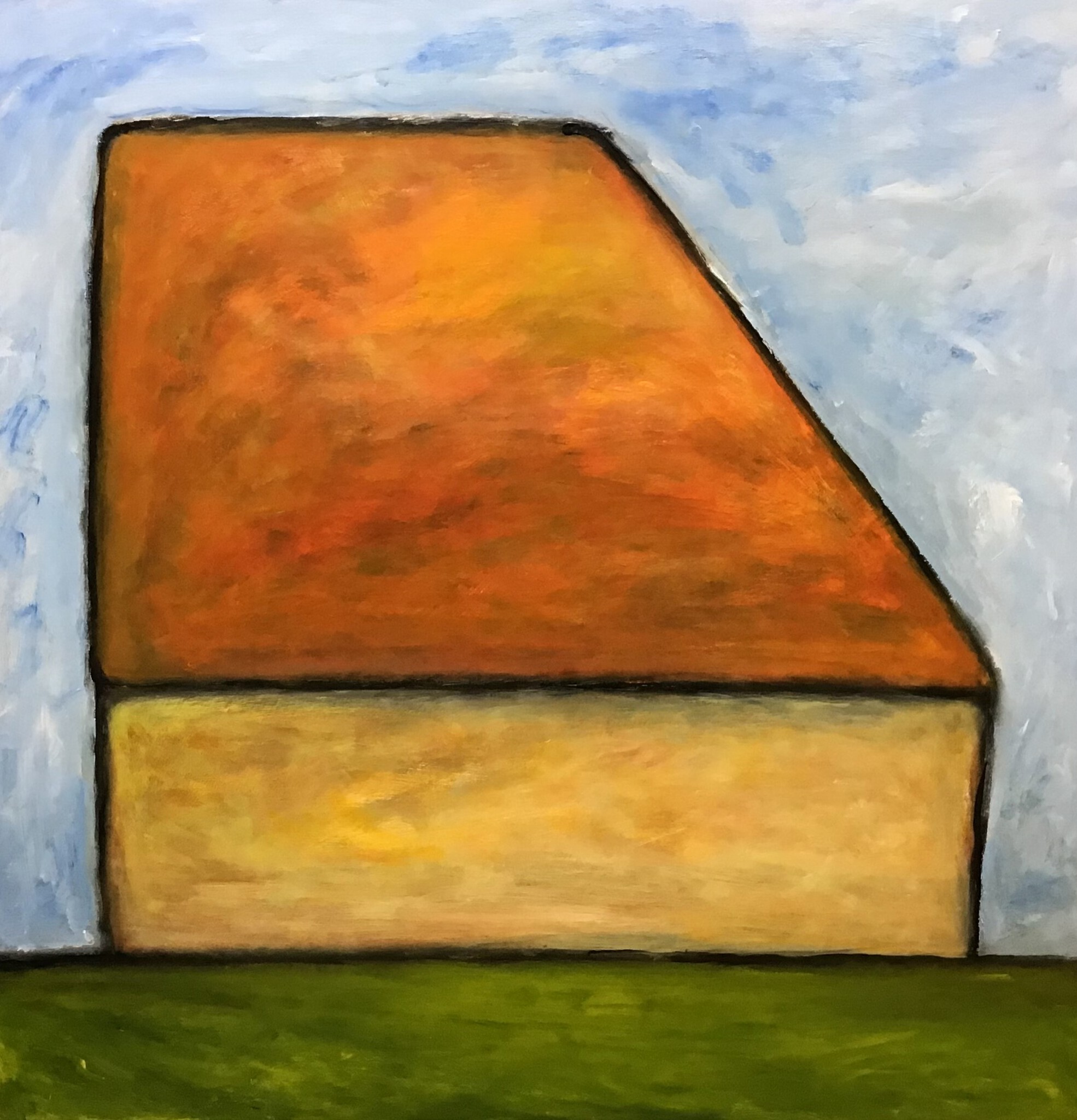 Schapenboet verbeeld in eenvoudige vorm. Formaat 90 x 90 cm. Aflopend beeld, dus geen lijst.