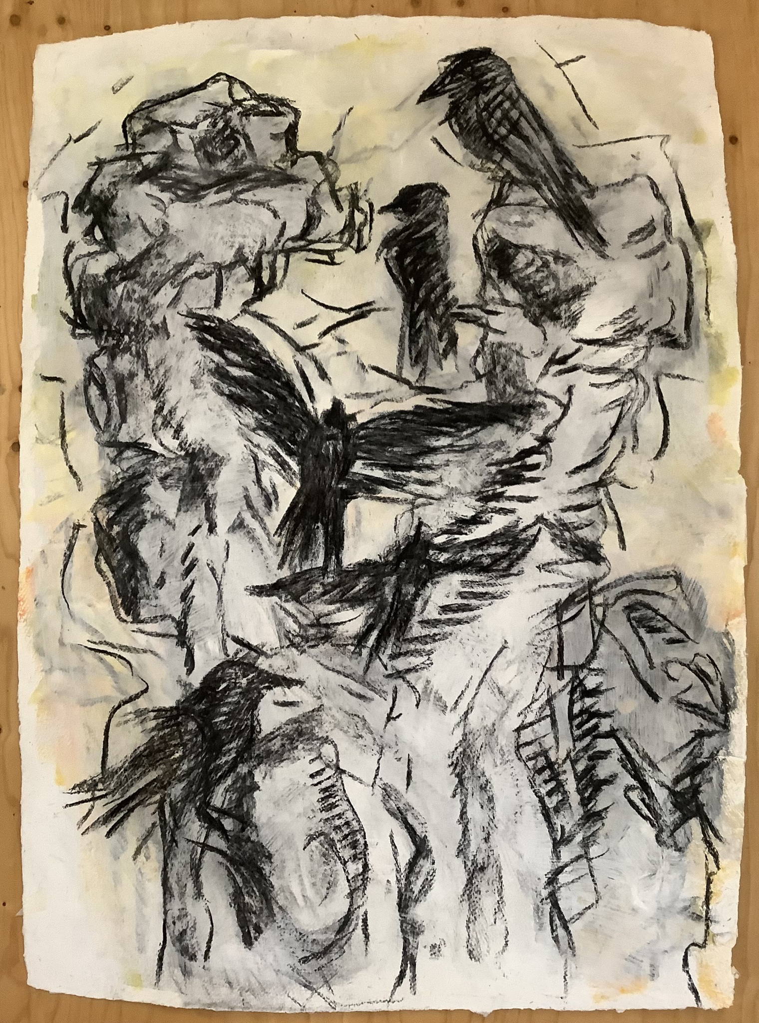 Acrylverf en houtskool op handgeschept papier