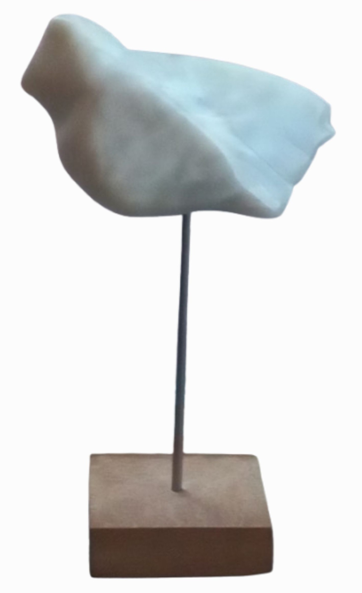 Vogel van aziatisch speksteen op sokkel. Te zien bij Galerie Tijd voor Kunst in Oegstgeest.