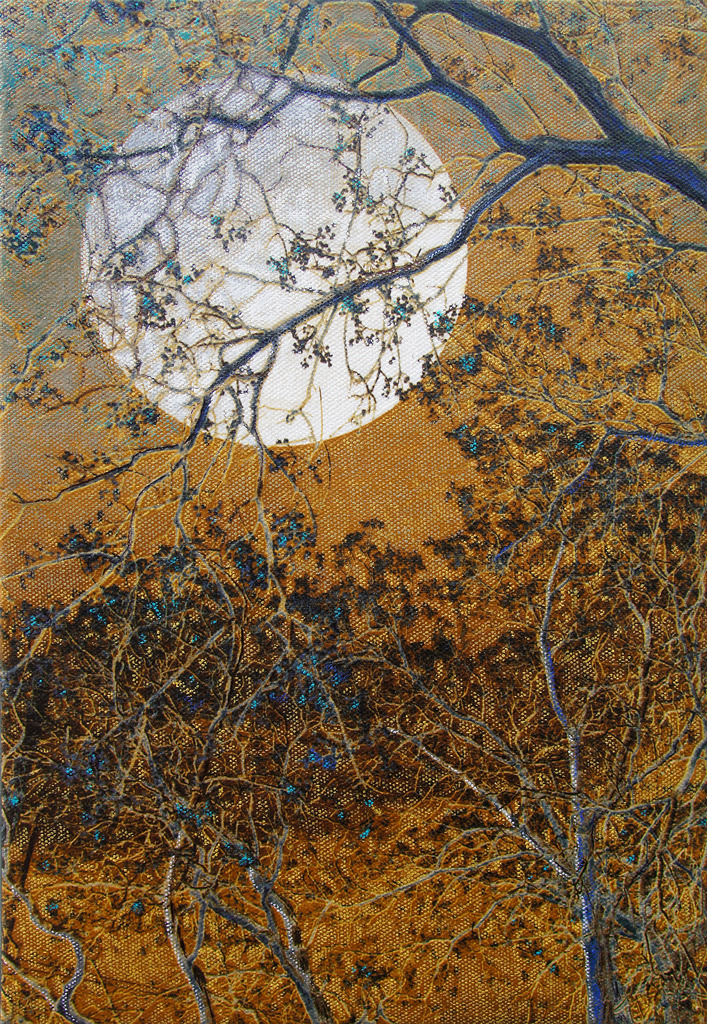 Geel Blauw Oker Goud Maan Gouden Bladeren Bomen Winter Rond Geloof Maneschijn Contrast Dor Volle Blaadjes Bijgeloof Schijnen Belicht Albuquerque