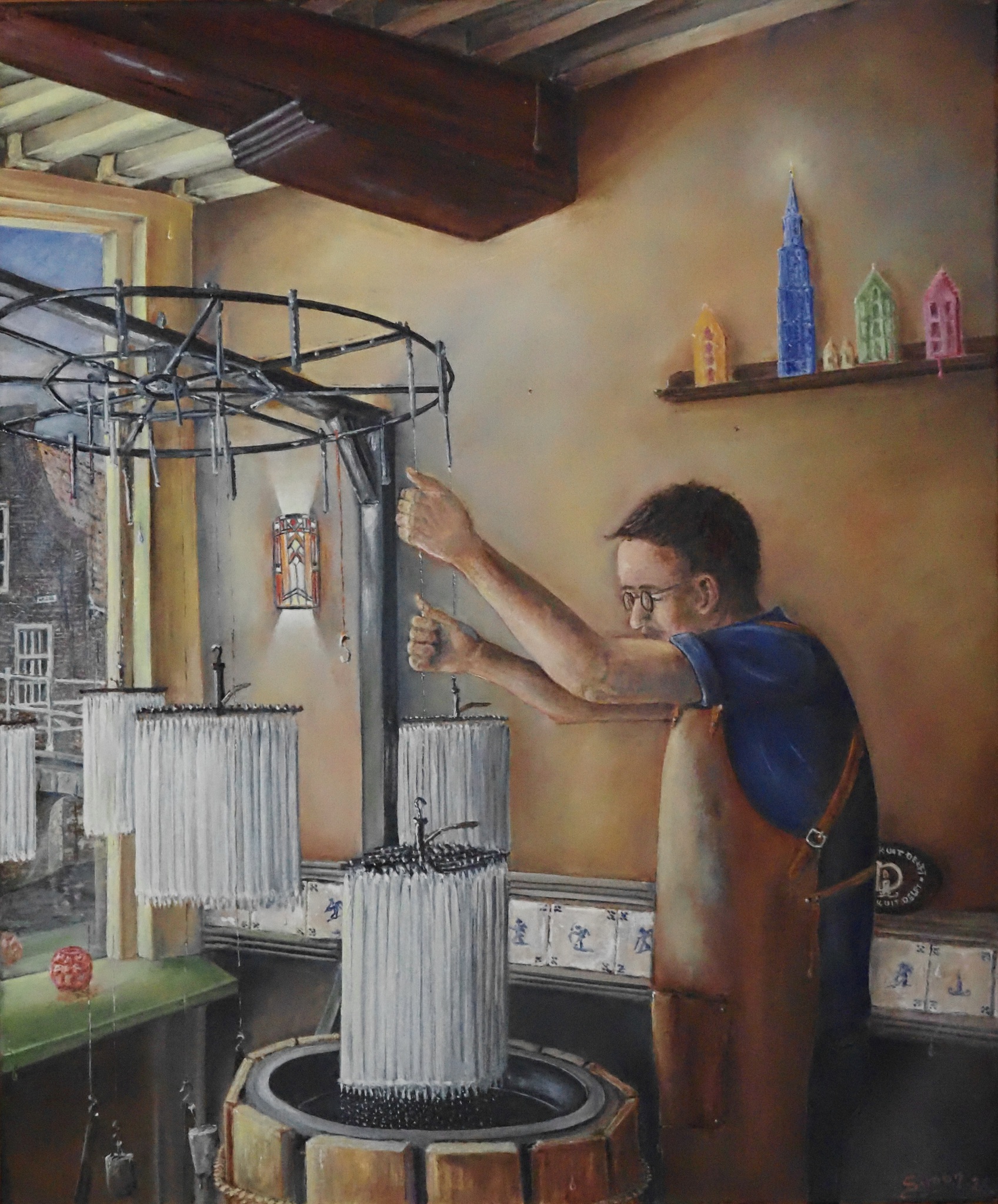 Kaarsenmaker. Was. Warmte, Dopen. Kaars is, Was, Warmte. Kaars is.... Vuur. Kaars Was. Eens.... Is alles was. Een schilderij over schoonheid, aandacht en de vergankelijkheid van alles. De dingen die gemaakt worden, de aandacht voor het maakproces en de wetenschap dat wat gemaakt wordt meestal ook weer verdwijnt. De kaars is daarvan het ultieme voorbeeld: gemaakt om weer te verbranden. Maar het gaat ook om schoonheid. Schoonheid van het maken, het genieten van wat gemaakt is!