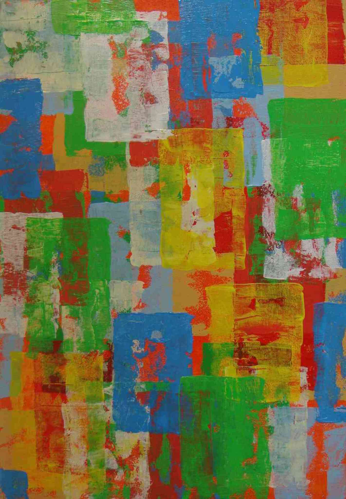 Schilderij Wit Abstract Rood Oranje Geel Blauw Yellow Groen Blue Canvas Doek Painting Red Green White Blokken Orange Blocks Scheltema Louky Loukyscheltema