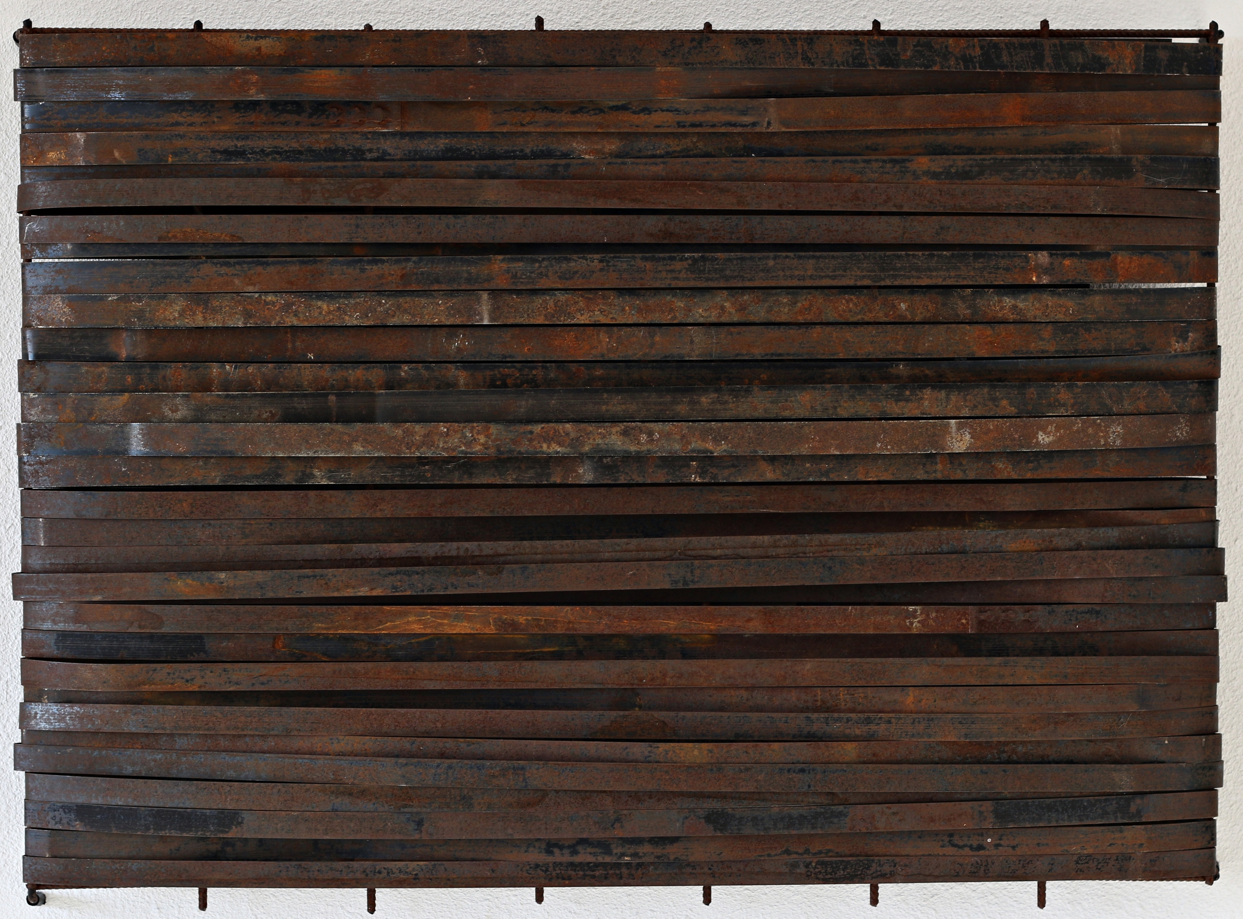 wandobject uit geroeste metalen strips