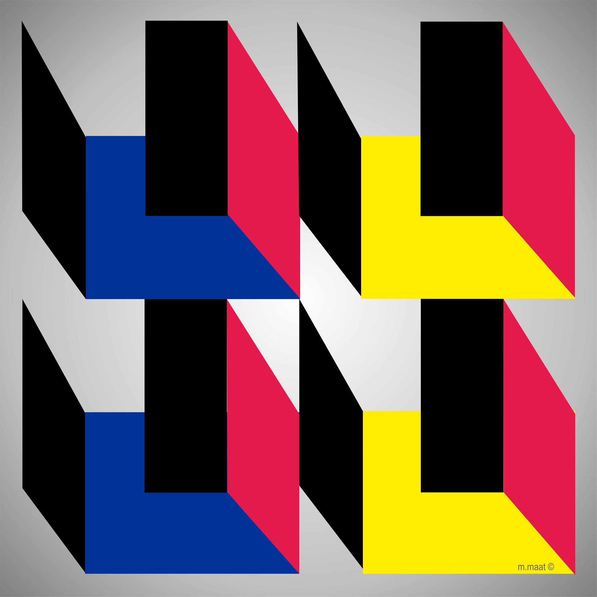 Computerart Geo 3D Constructions 1. /Geometrische constructie in perspectief/ [Kan in opdracht gedrukt worden op plexiglas in diverse maten] Deze afbeelding is ook geplaatst in het artikel: 'Geometrie in de polders', een observatie uit de jaren '20 van de vorige eeuw van Aldous Huxley'. Het door mij geschreven artikel is te vinden op de site van EXTO onder de rubriek: Kunstnieuws. https://www.exto.nl/kunstnieuws/monica-maat-3.html
