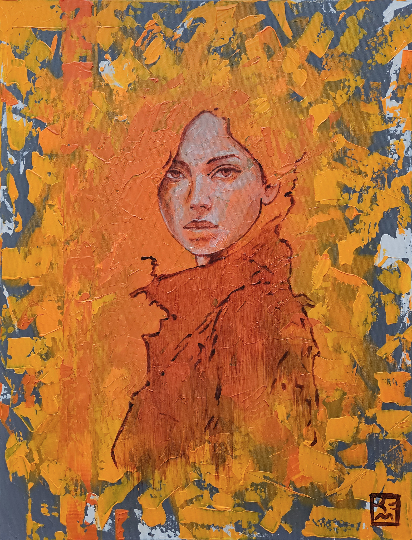 Rood Oranje Portret Vuur Gekleurd Vel